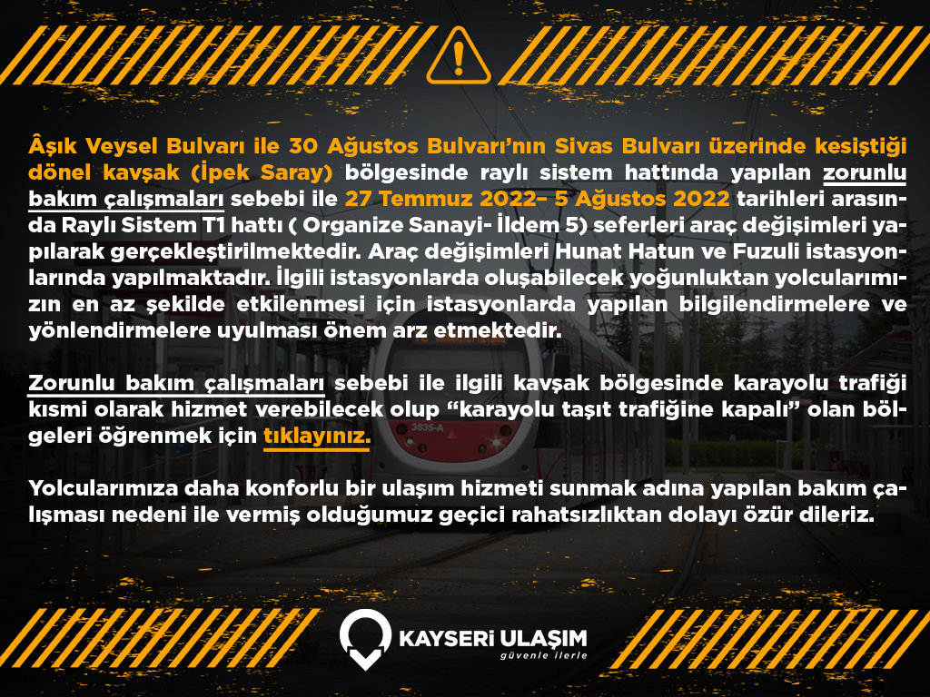 Kayseri Büyükşehir Belediyesi bünyesindeki Ulaşım A.Ş., raylı sistem duraklarında erişilebilirlik kriterlerini başarıyla karşılayarak uygunl...