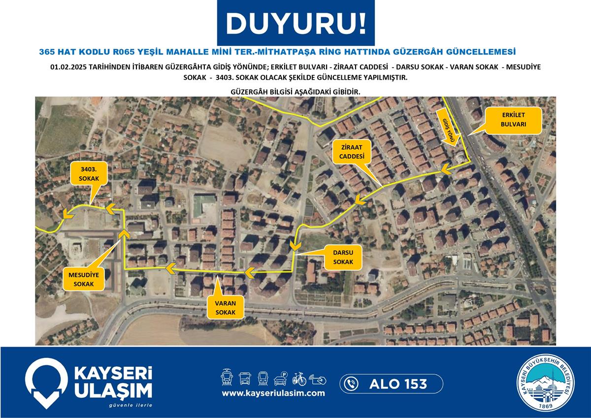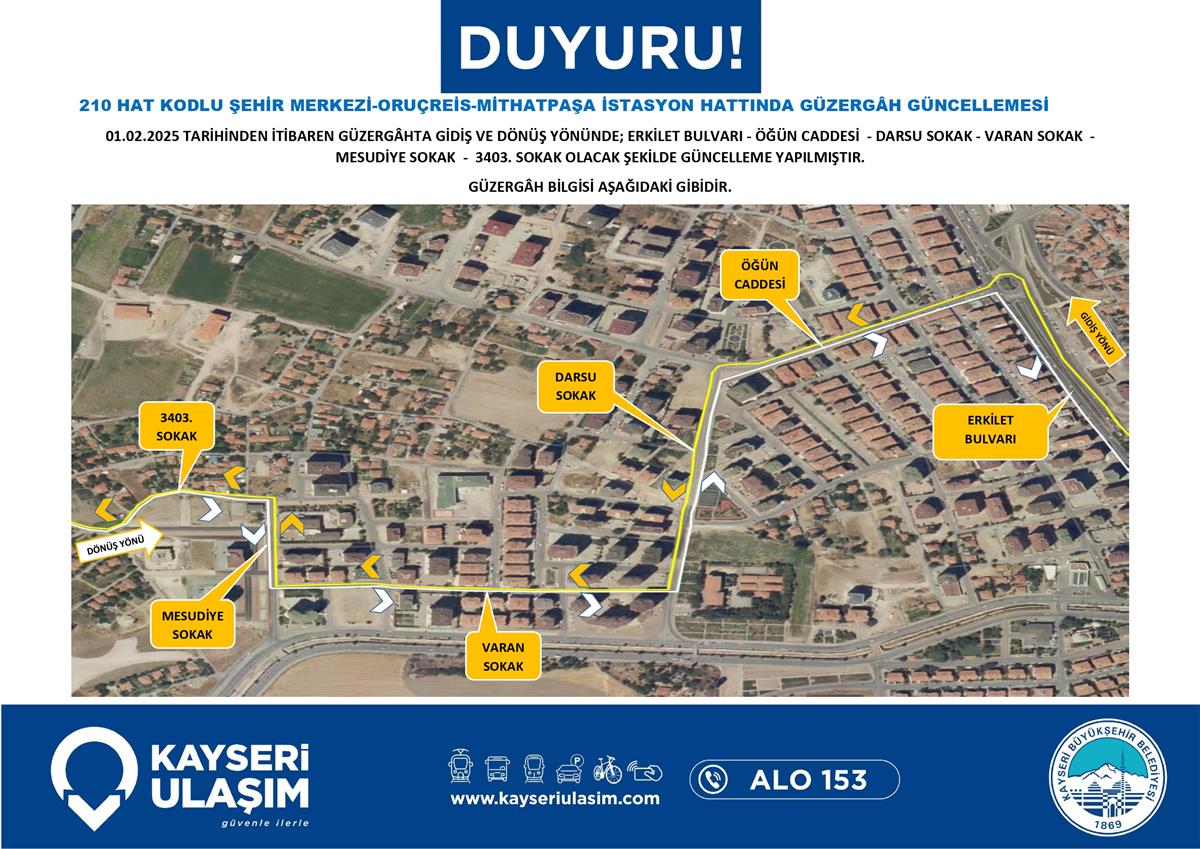 01 Şubat 2025 Tarihinden itibaren Bazı Güzergah Güncellemeleri Yapılmıştır.