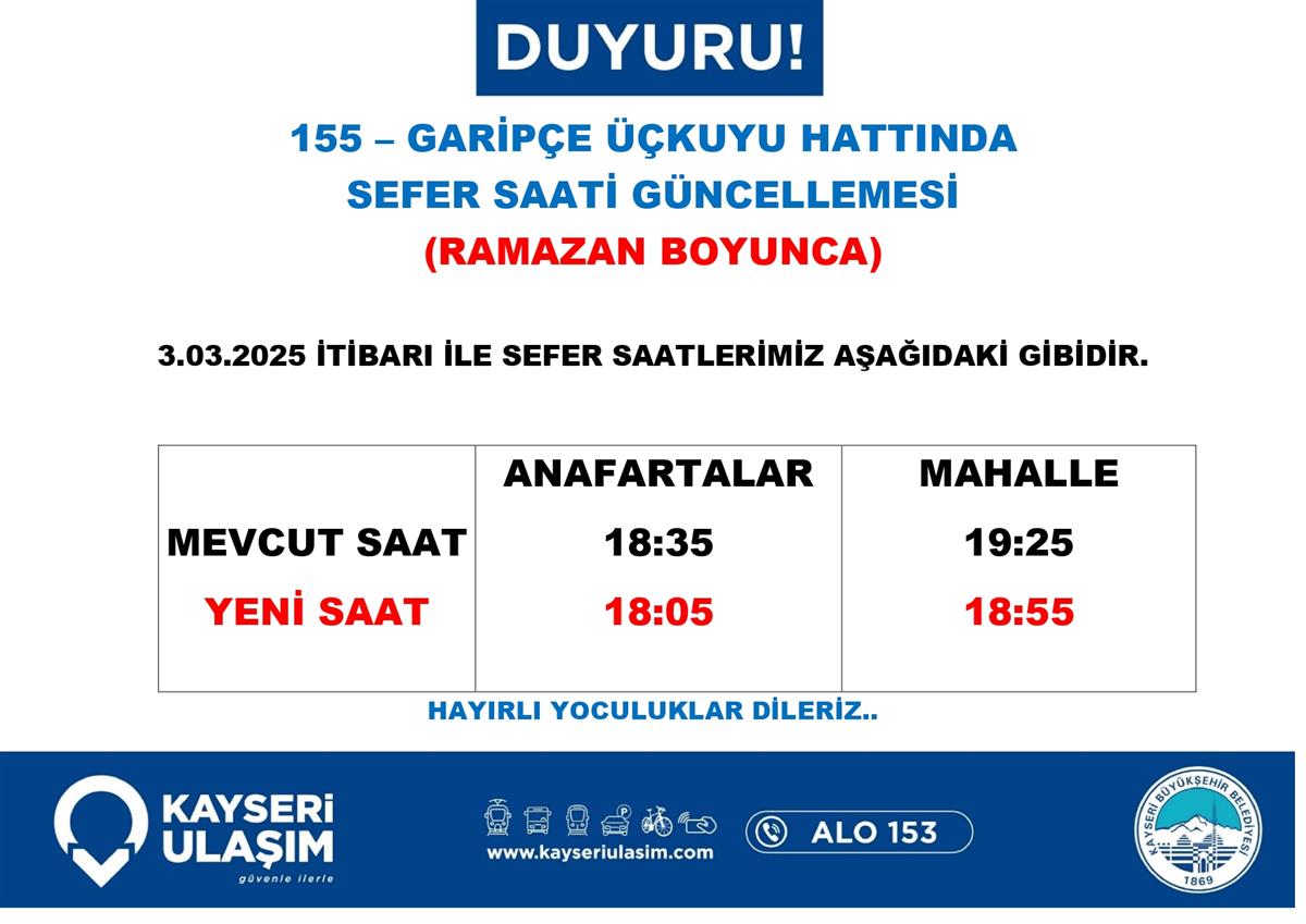 GARİPÇE ÜÇKUYU HATTINDA SEFER SAATİ GÜNCELLEMESİ