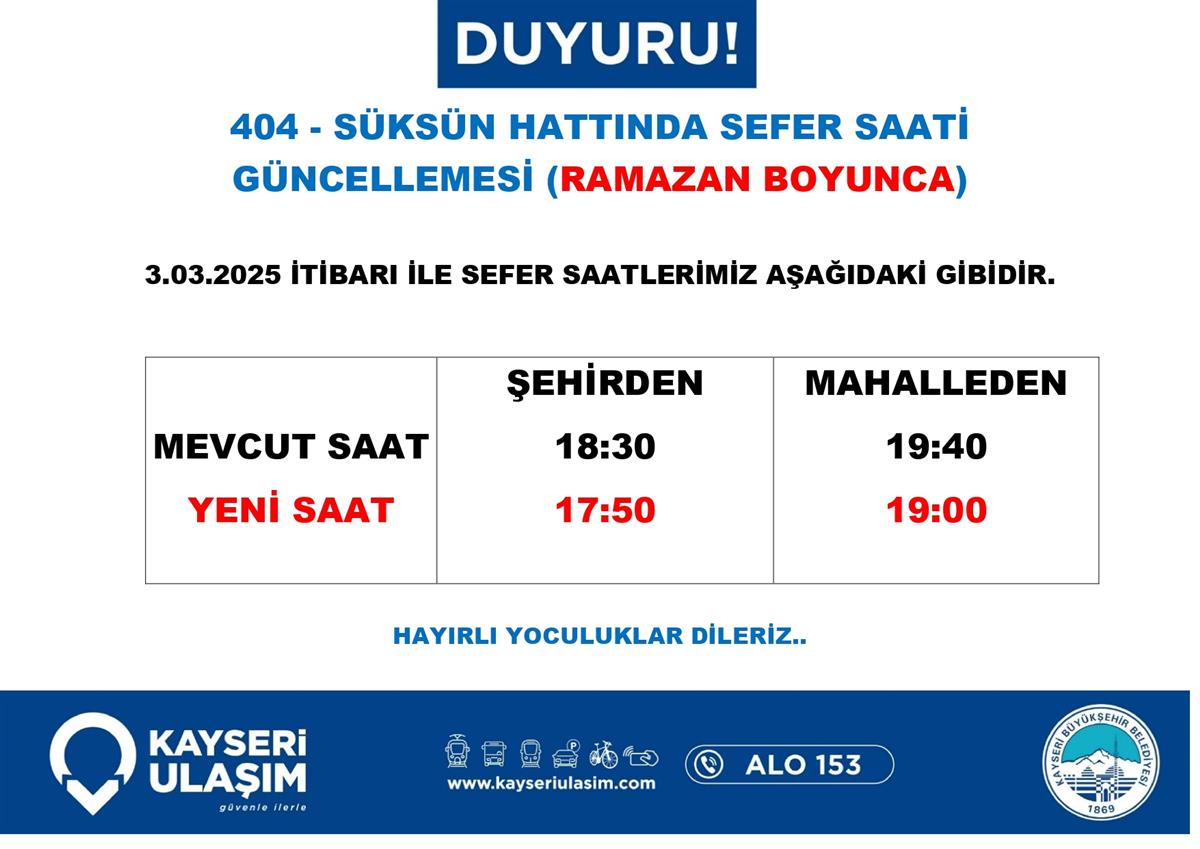 SÜKSÜN HATTINDA SEFER SAATİ GÜNCELLEMESİ