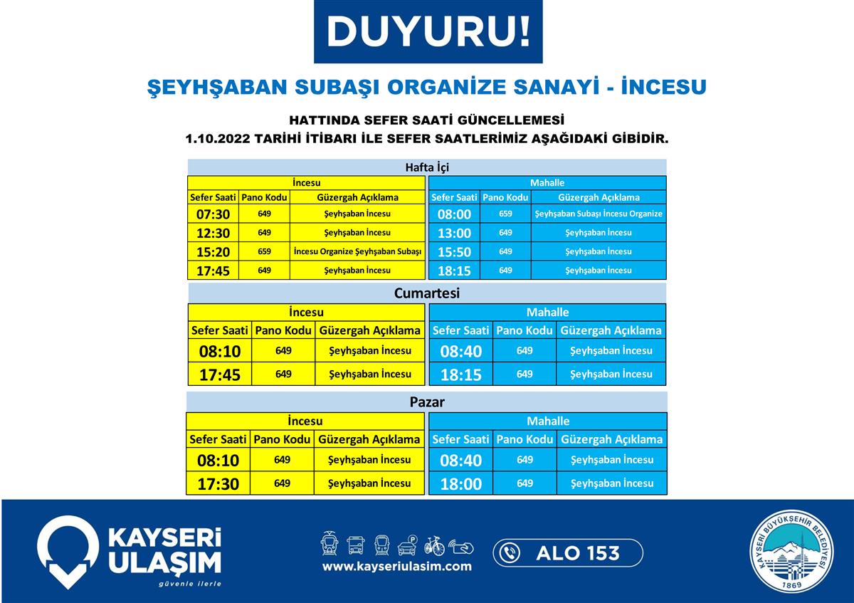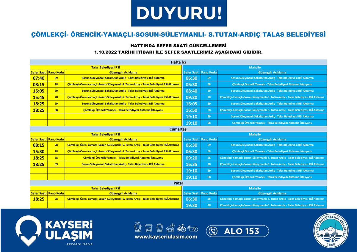 03.10.2022 Tarihinden İtibaren Değişik Yapılacak Otobüs Seferleri Duyurusu!