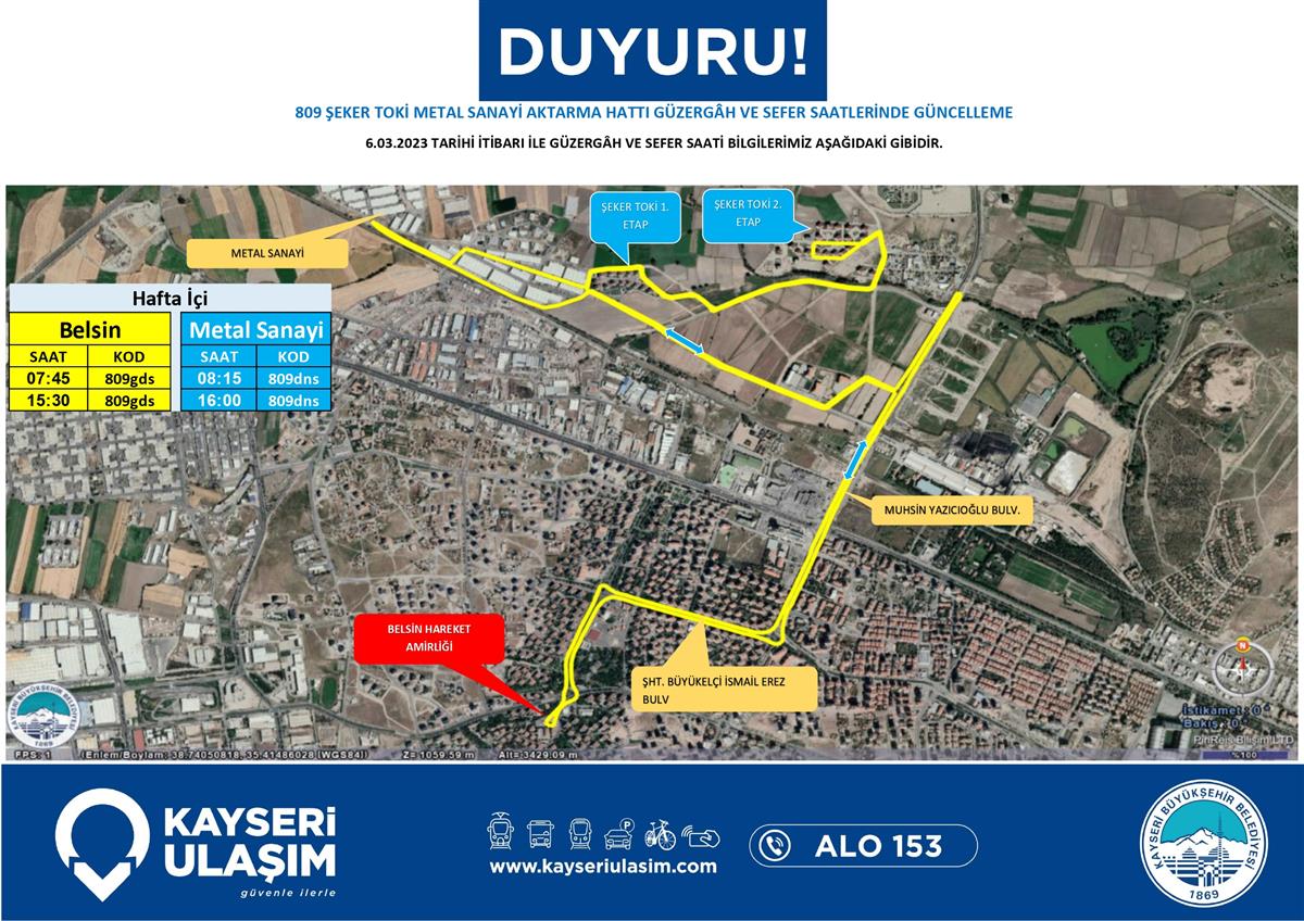 809 şeker toki metal sanayi aktarma hattı güzergâh ve sefer saatlerinde güncelleme