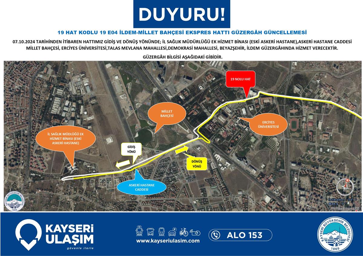 İLDEM-MİLLET BAHÇESİ EKSPRES HATTI GÜZERGÂH GÜNCELLEMESİ