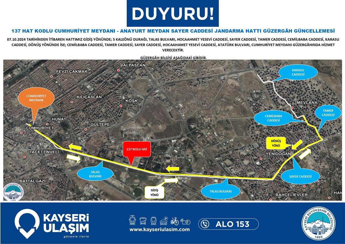 CUMHURİYET MEYDANI - ANAYURT MEYDAN SAYER CADDESİ JANDARMA HATTI GÜZERGÂH GÜNCELLEMESİ