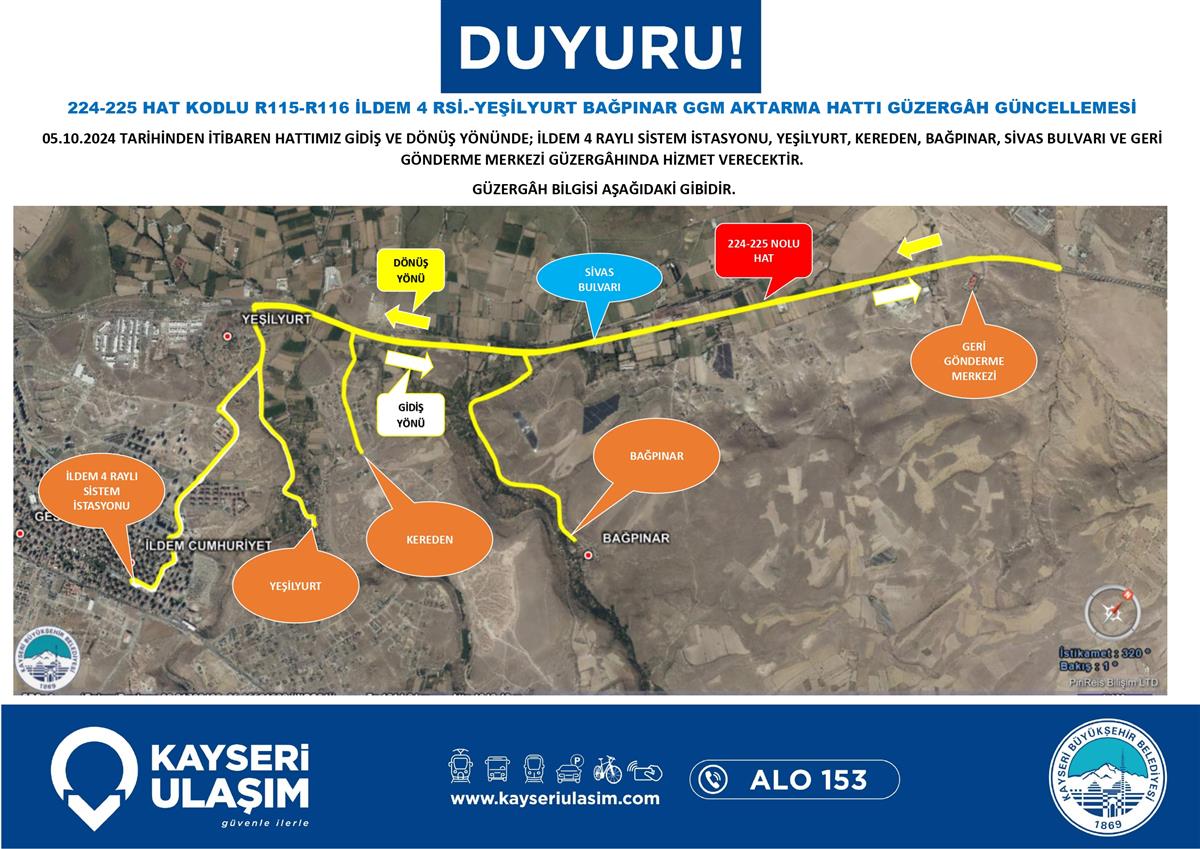 İLDEM 4 RSİ. - YEŞİLYURT KÜMEEVLER BAĞPINAR AKTARMA HATTI GÜZERGÂH GÜNCELLEMESİ
