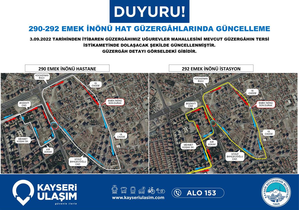 Sayın yolcularımız, aşağıdaki görsellerde yer alan hatlarda hat ve sefer saat güncellemeleri yapılmıştır. Güncel sefer saati, güzergah bilgilerine web sitemiz ve mobil uygulamamız üzerinden ulaşabilirsiniz. Sağlıklı yolculuklar dileriz.