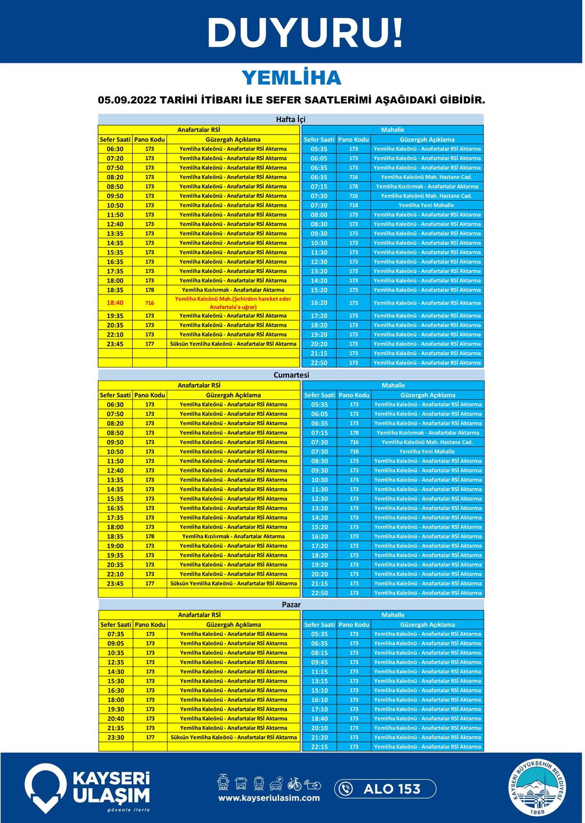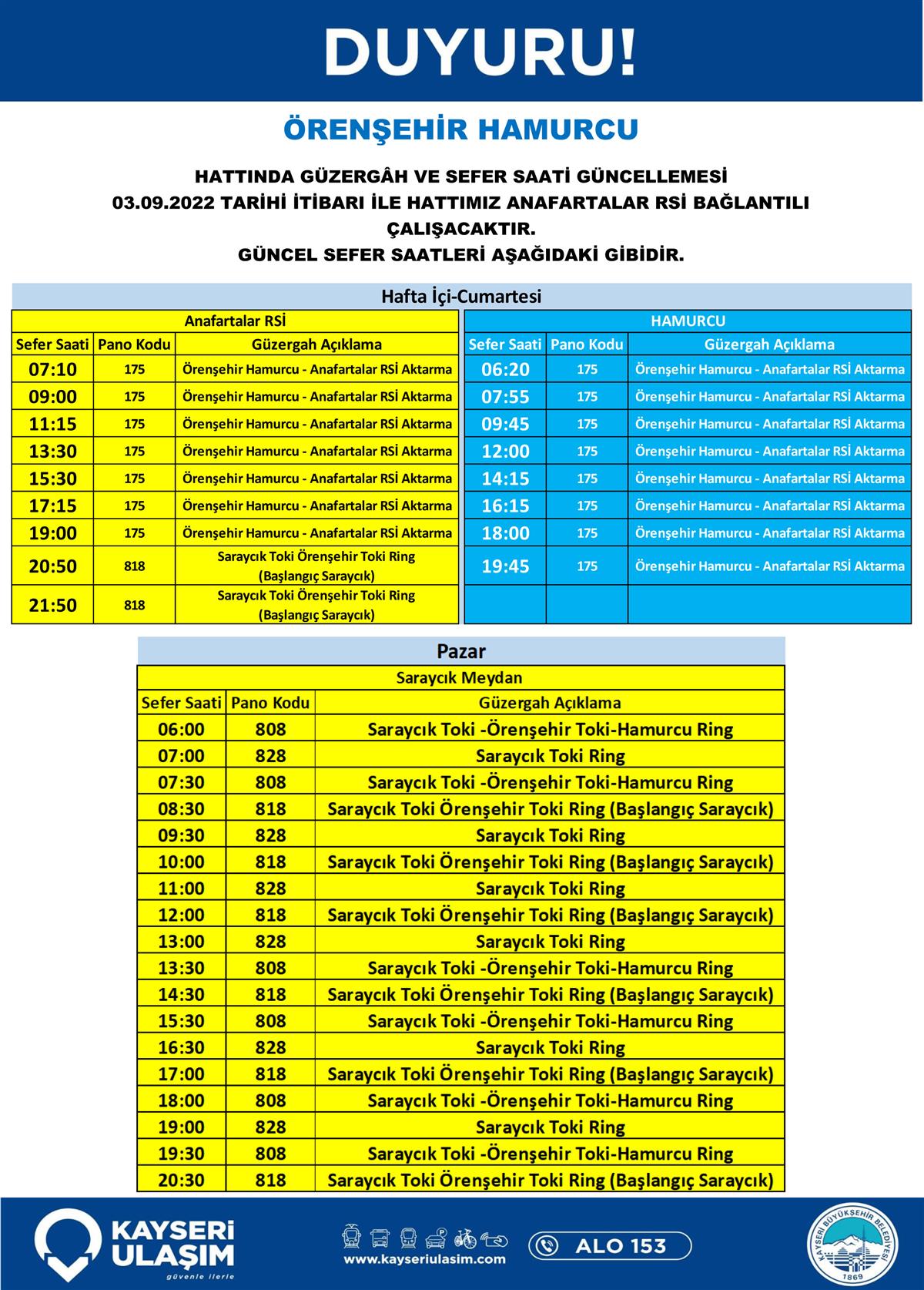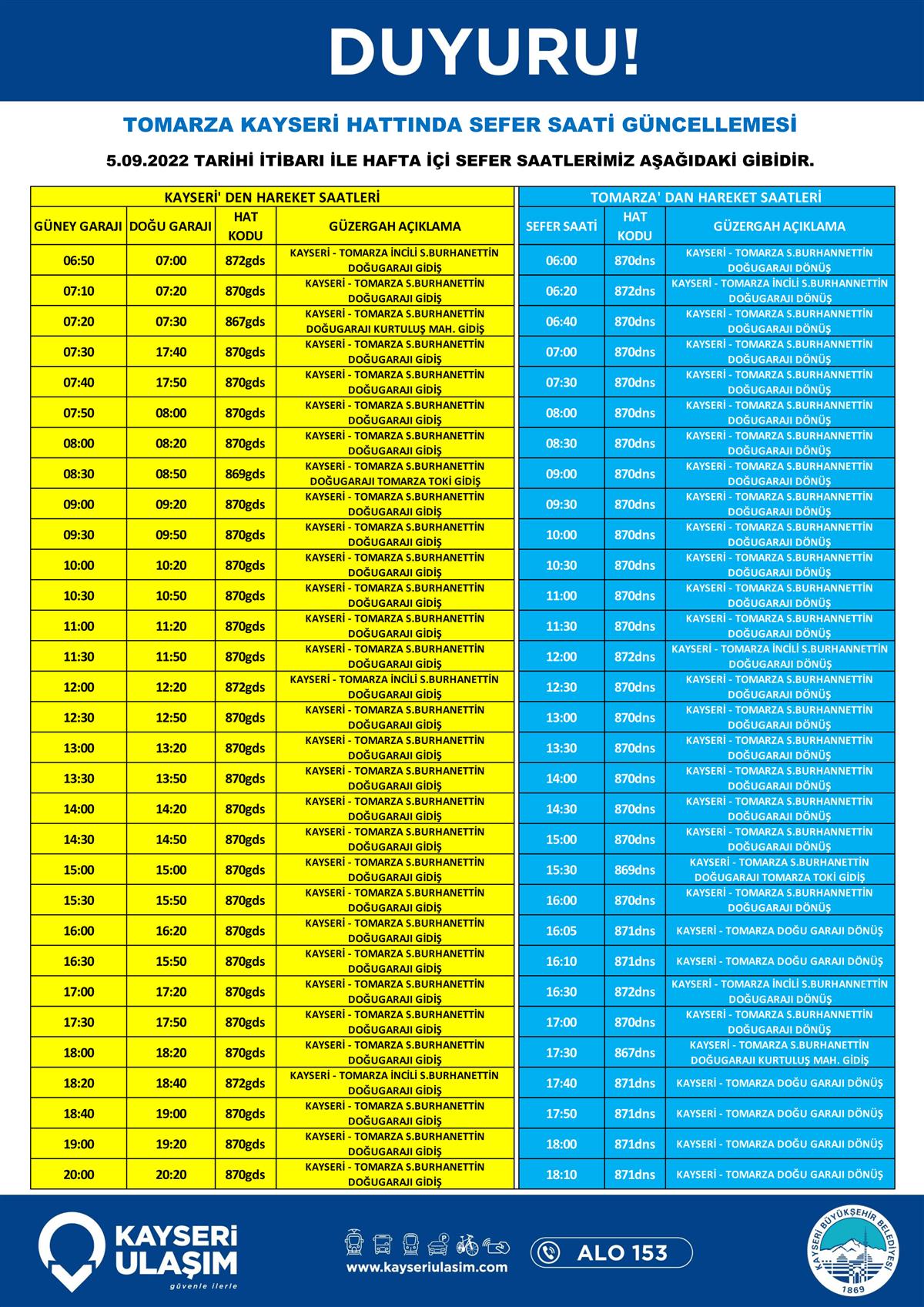05.09.2022 Tarihinden İtibaren Değişik Yapılacak Otobüs Seferleri Duyurusu!