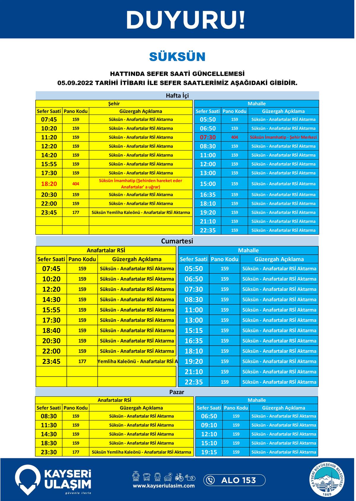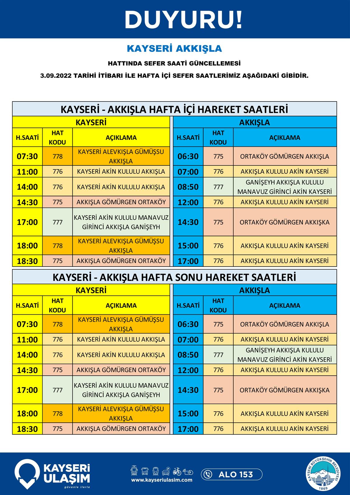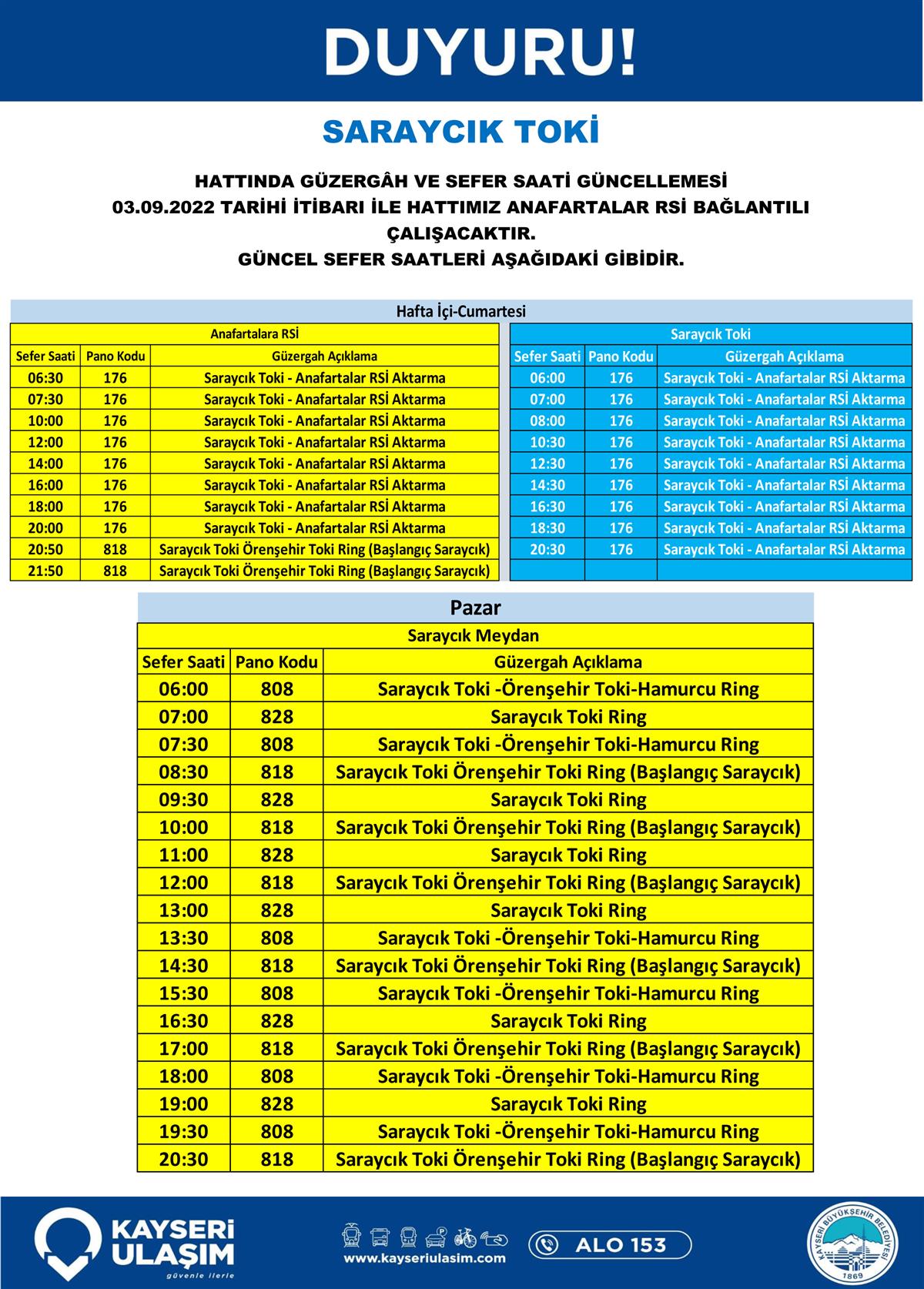 05.09.2022 Tarihinden İtibaren Değişik Yapılacak Otobüs Seferleri Duyurusu!