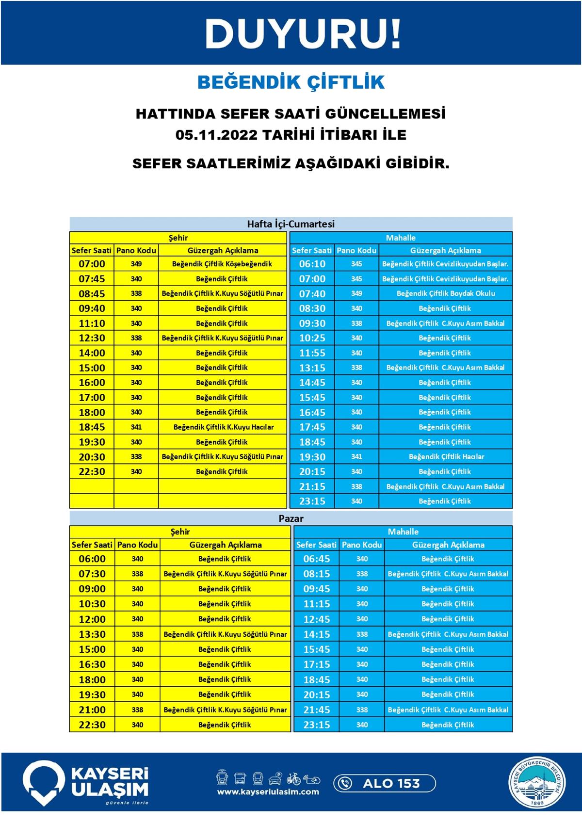 05.11.2022 Tarihli Değişlik Yapılacak Otobüs Seferleri Duyurusu!
