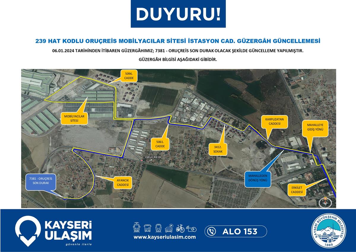 ORUÇREİS MOBİLYACILAR SİTESİ İSTASYON CAD. GÜZERGÂH GÜNCELLEMESİ