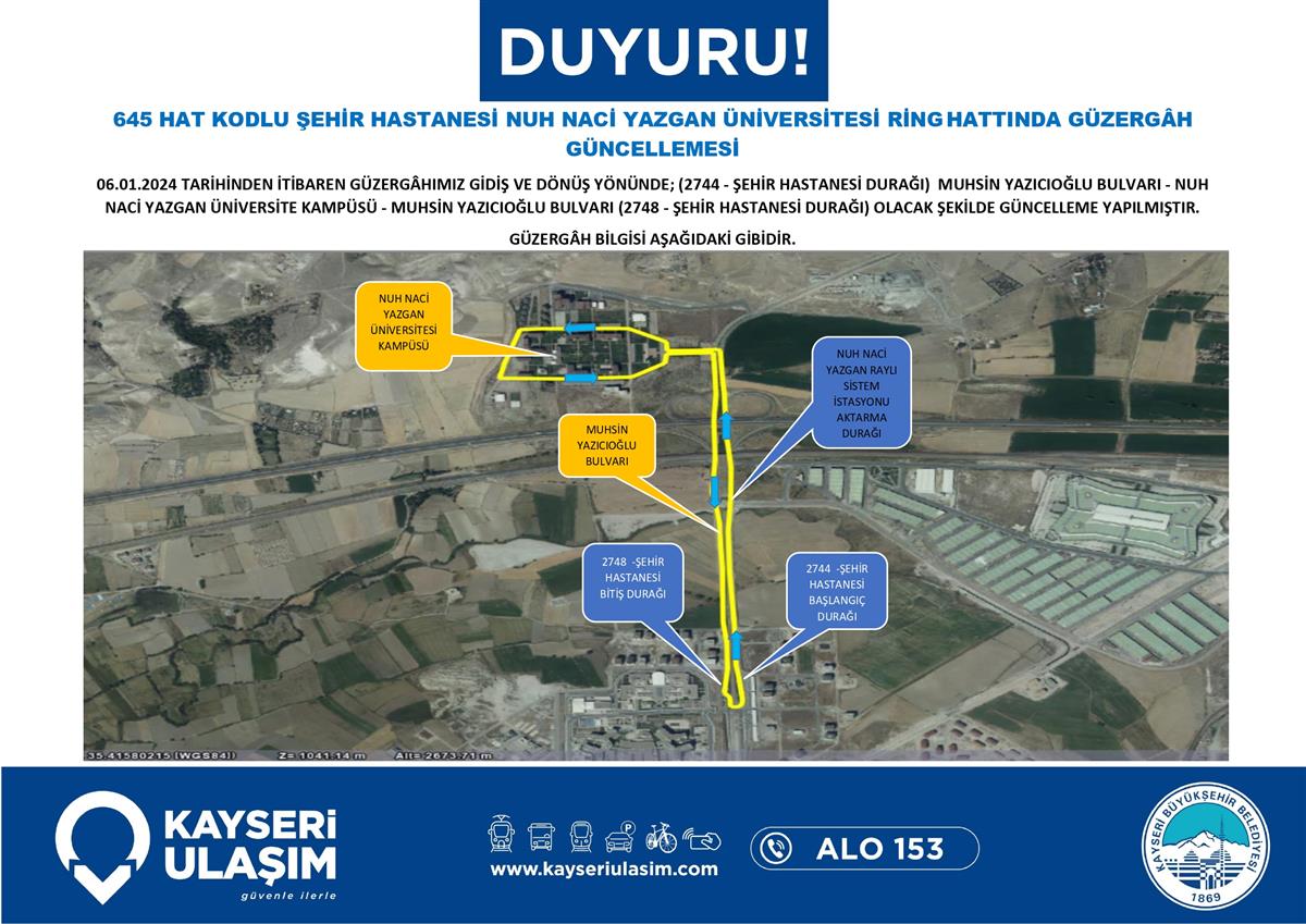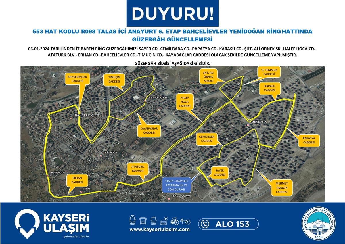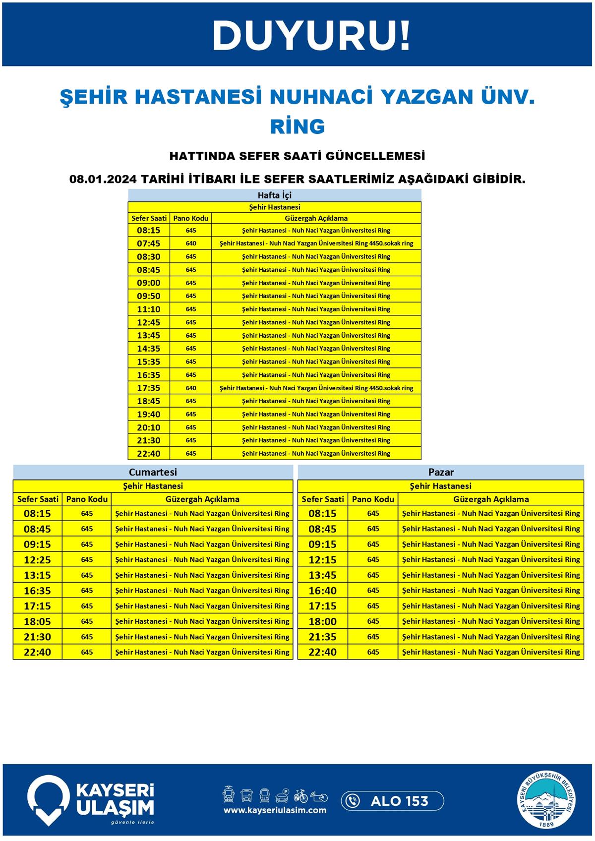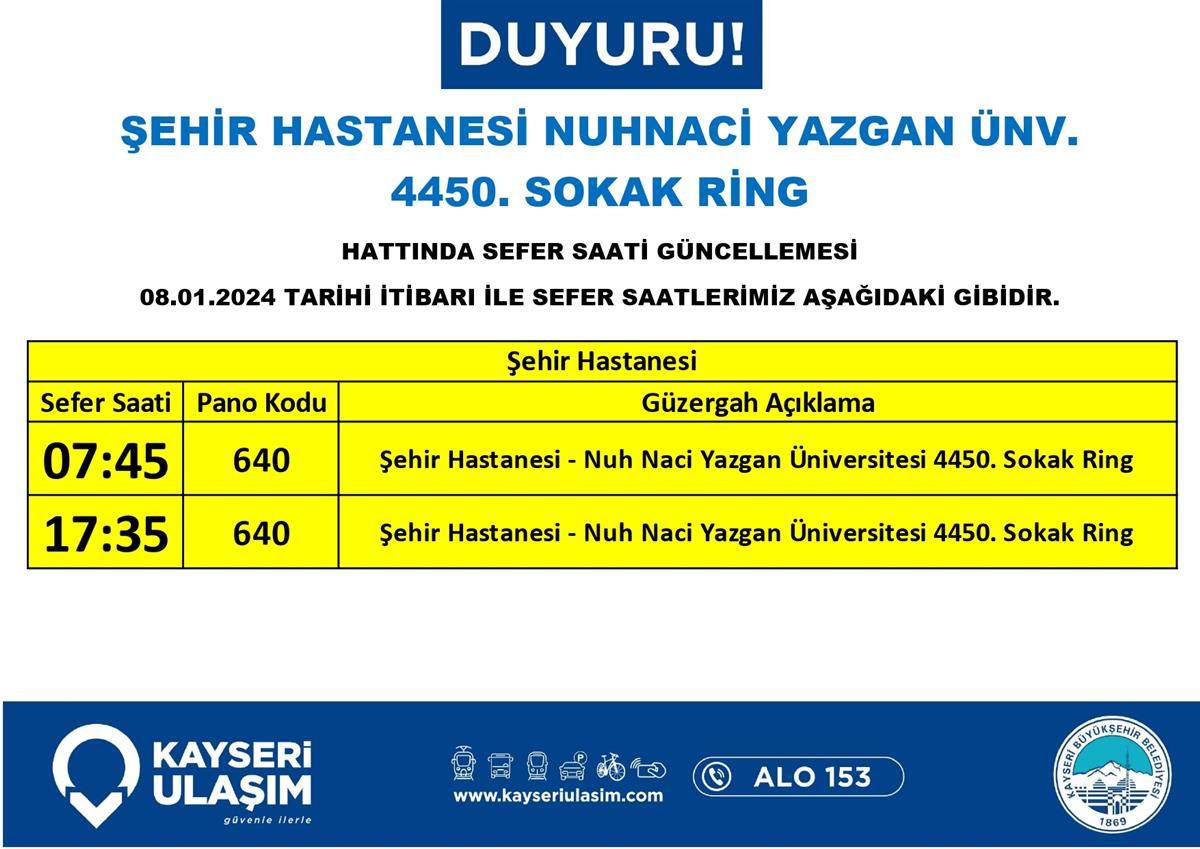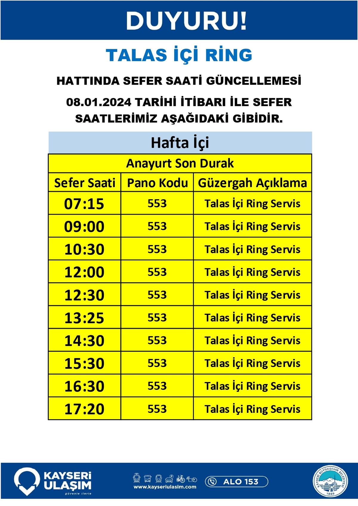 TALAS İÇİ RİNG HATTINDA SEFER SAATİ GÜNCELLEMESİ