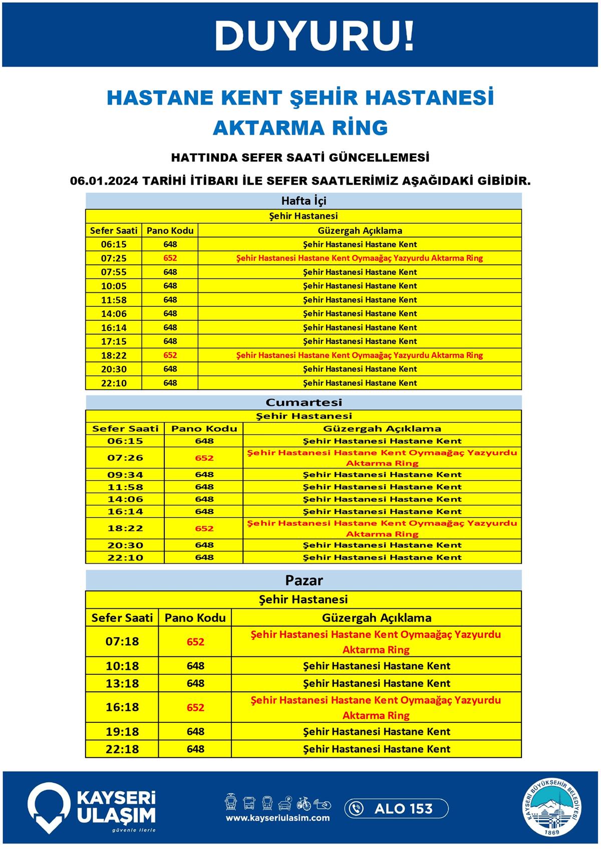 HASTANE KENT ŞEHİR HASTANESİ AKTARMA RİNG