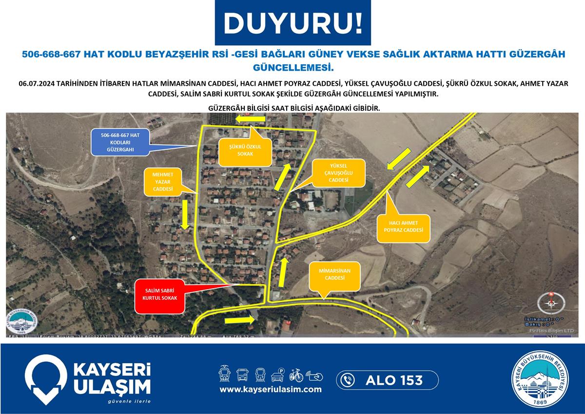 BEYAZŞEHİR RSİ -GESİ BAĞLARI GÜNEY VEKSE SAĞLIK AKTARMA HATTI GÜZERGÂH GÜNCELLEMESİ.