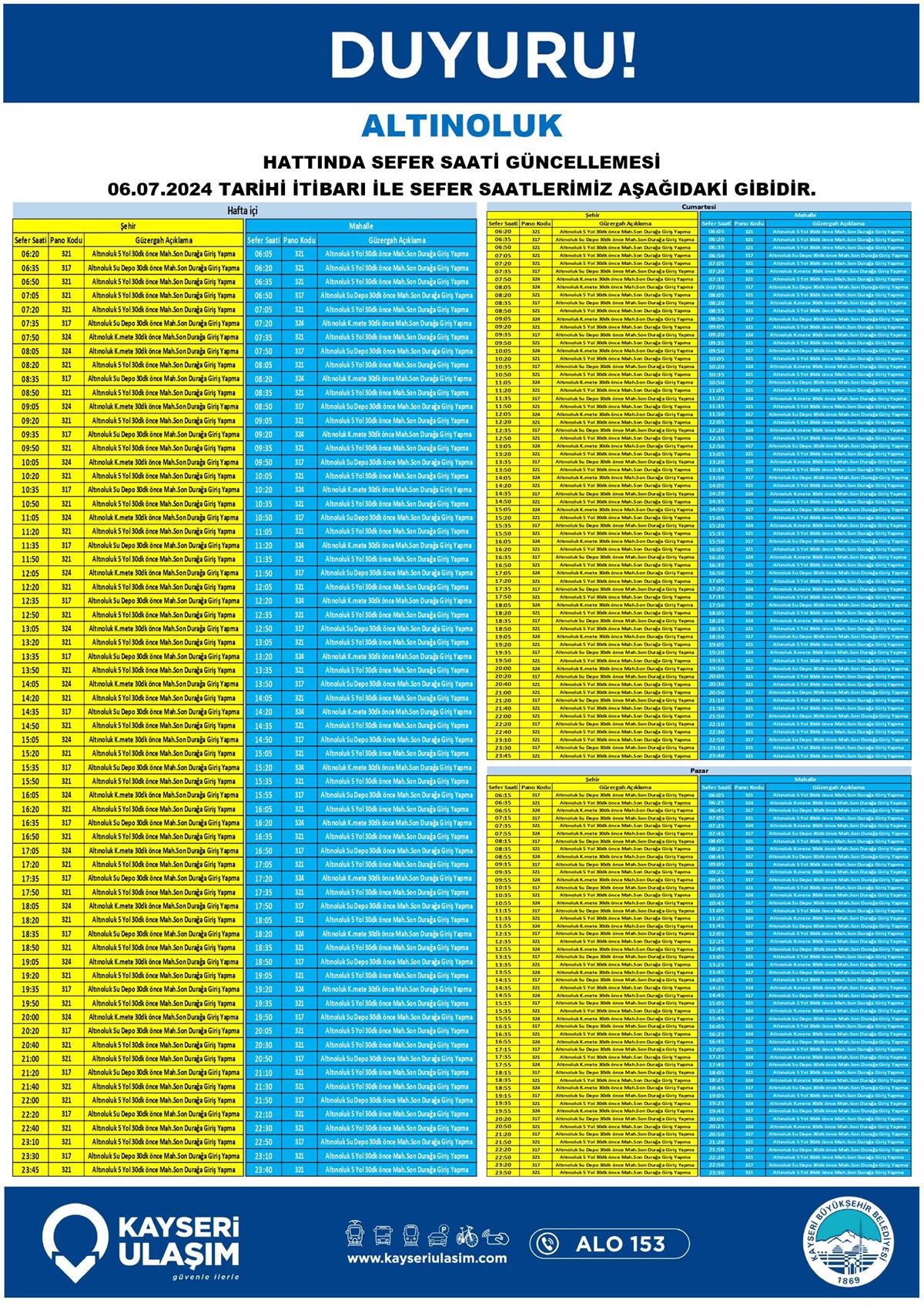 ALTINOLUK HATTINDA SEFER SAATİ GÜNCELLEMESİ