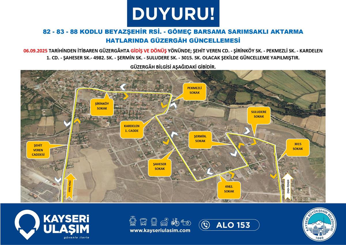 06 Eylül 2025 Tarihinden itibaren Bazı Güzergâh Güncellemeleri Yapılmıştır.