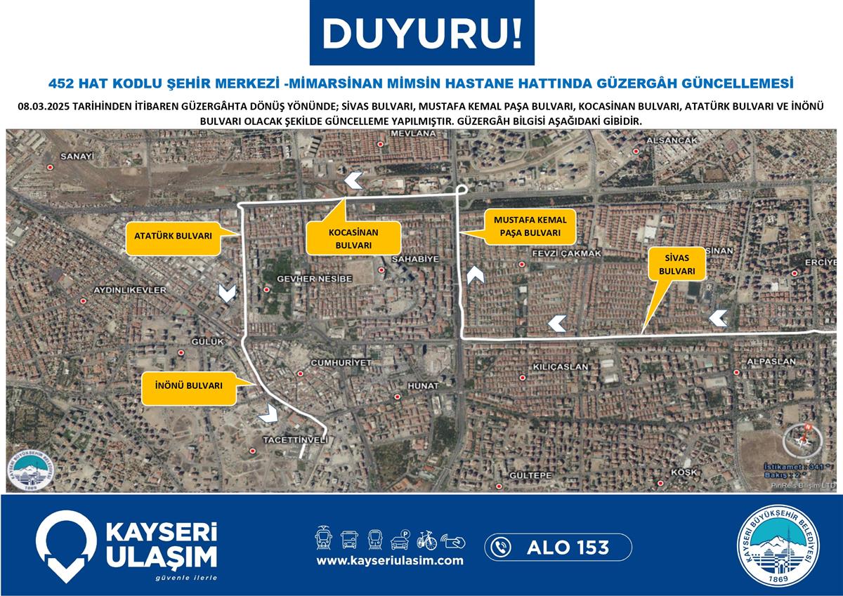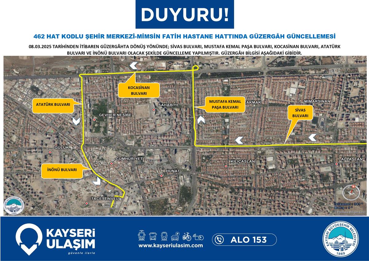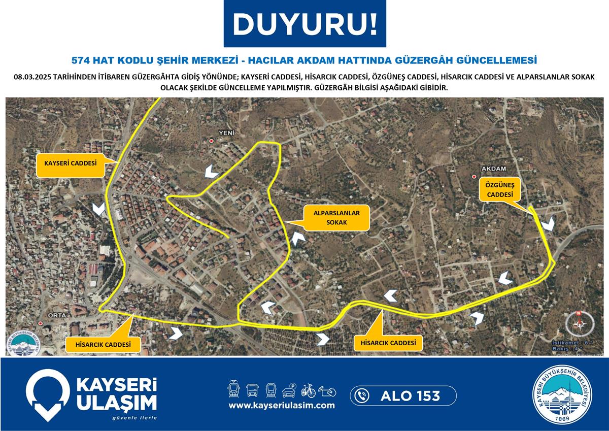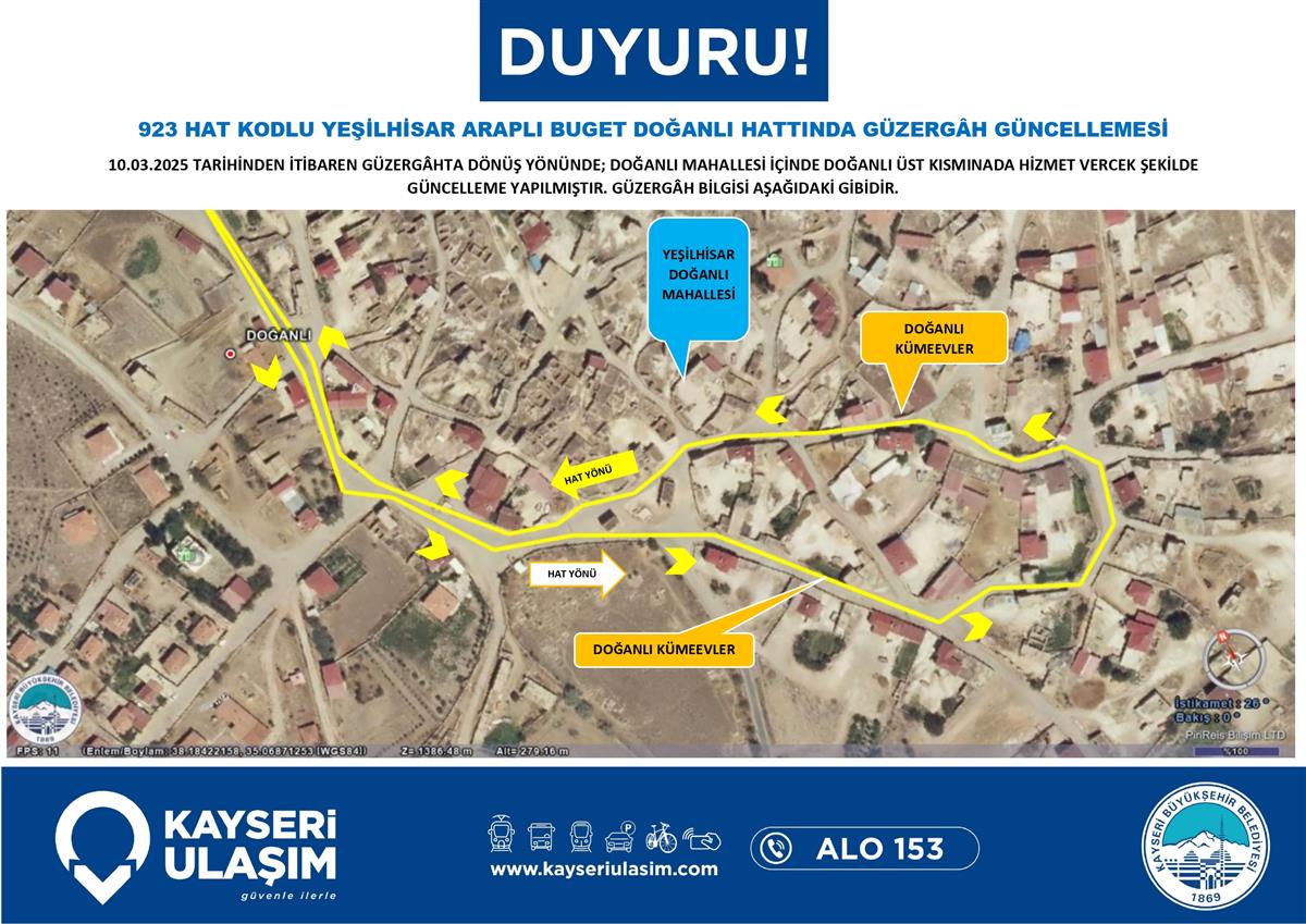 YEŞİLHİSAR ARAPLI BUGET DOĞANLI HATTINDA GÜZERGÂH GÜNCELLEMESİ
