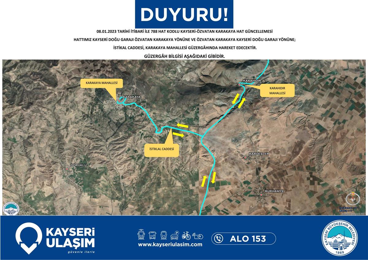 08.01.2023 TARİHİ İTİBARİ İLE 788 HAT KODLU KAYSERİ-ÖZVATAN KARAKAYA HAT GÜNCELLEMESİ