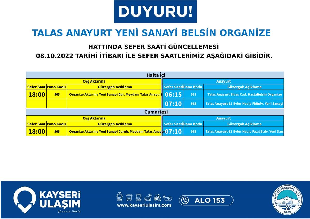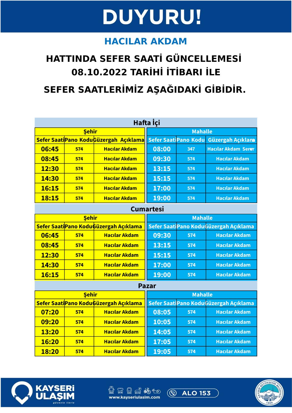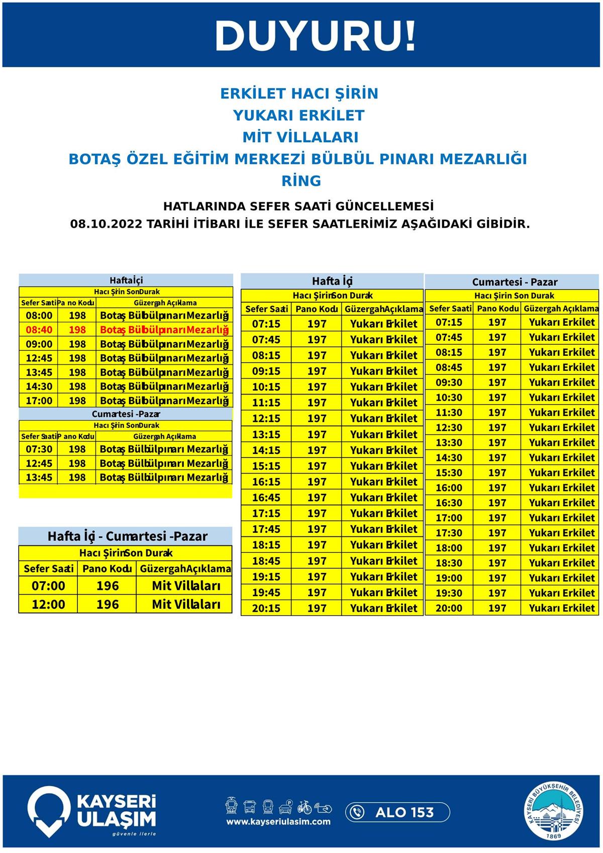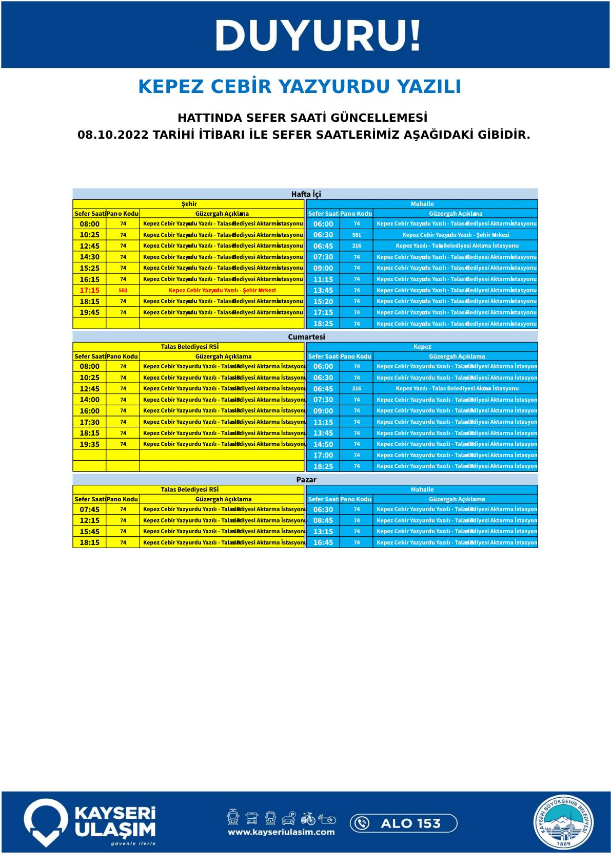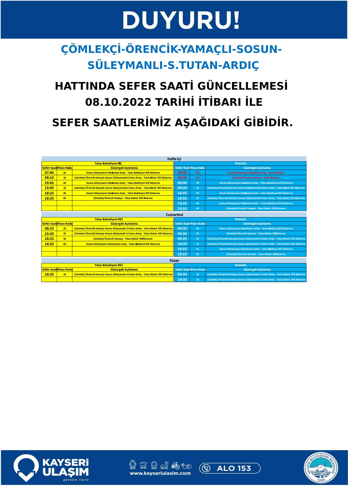 08.10.2022 Tarihinden İtibaren Değişik Yapılacak Otobüs Seferleri Duyurusu!