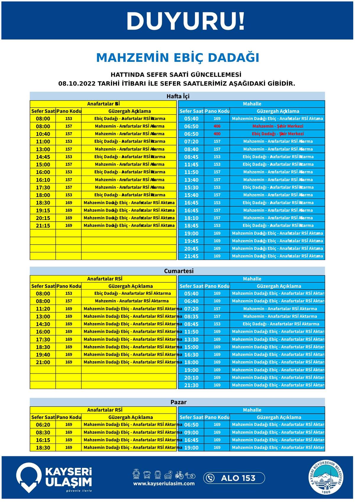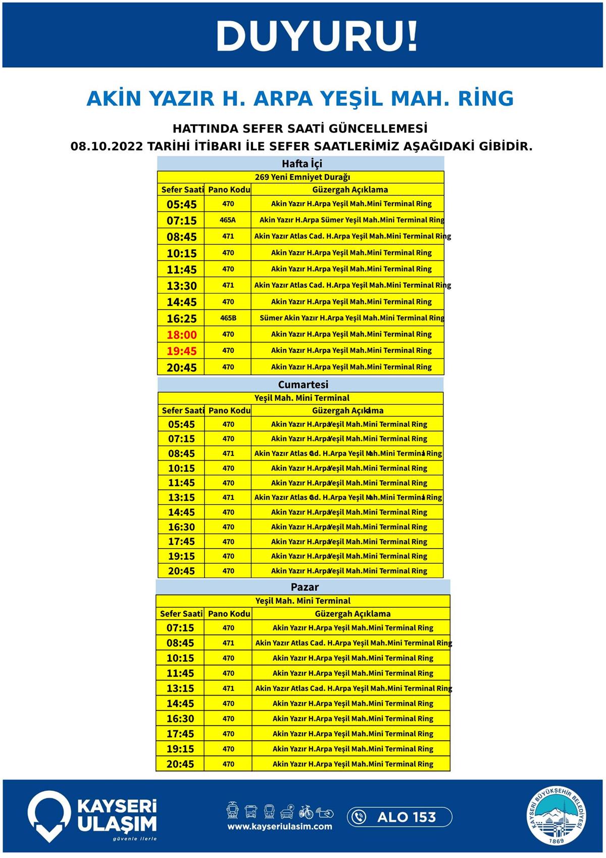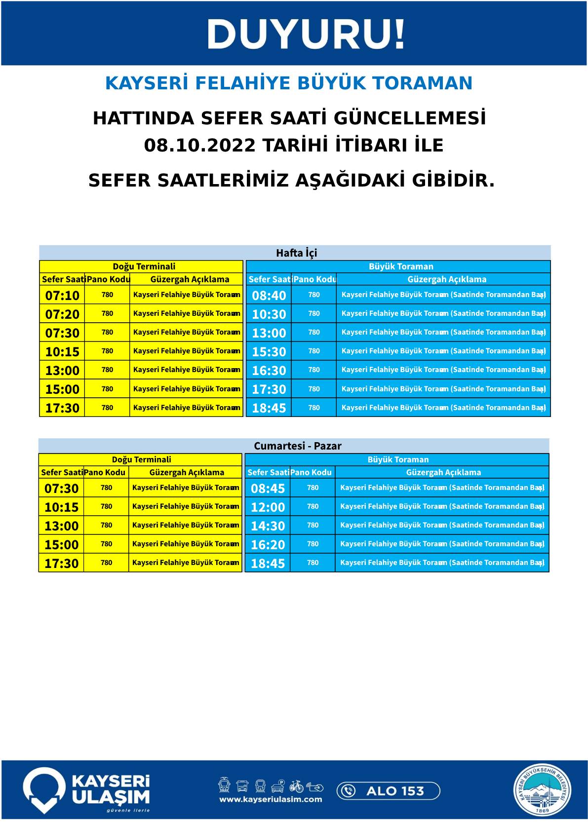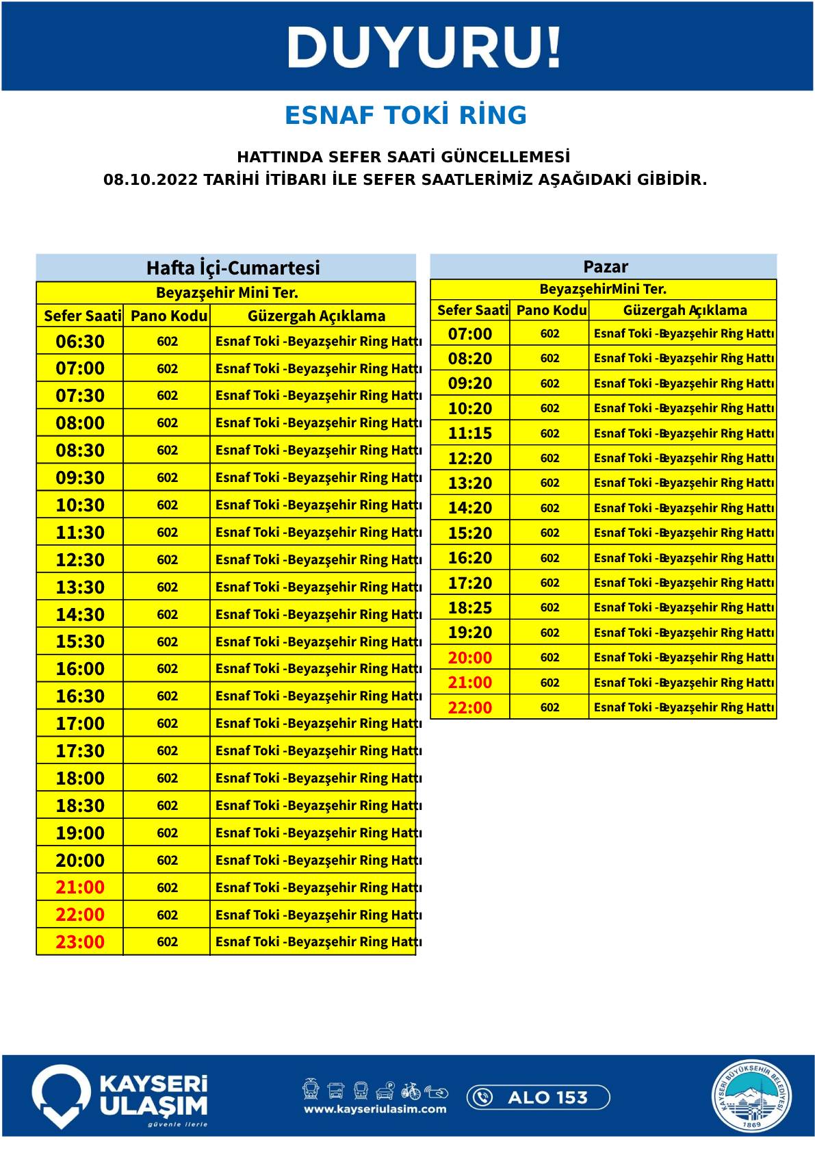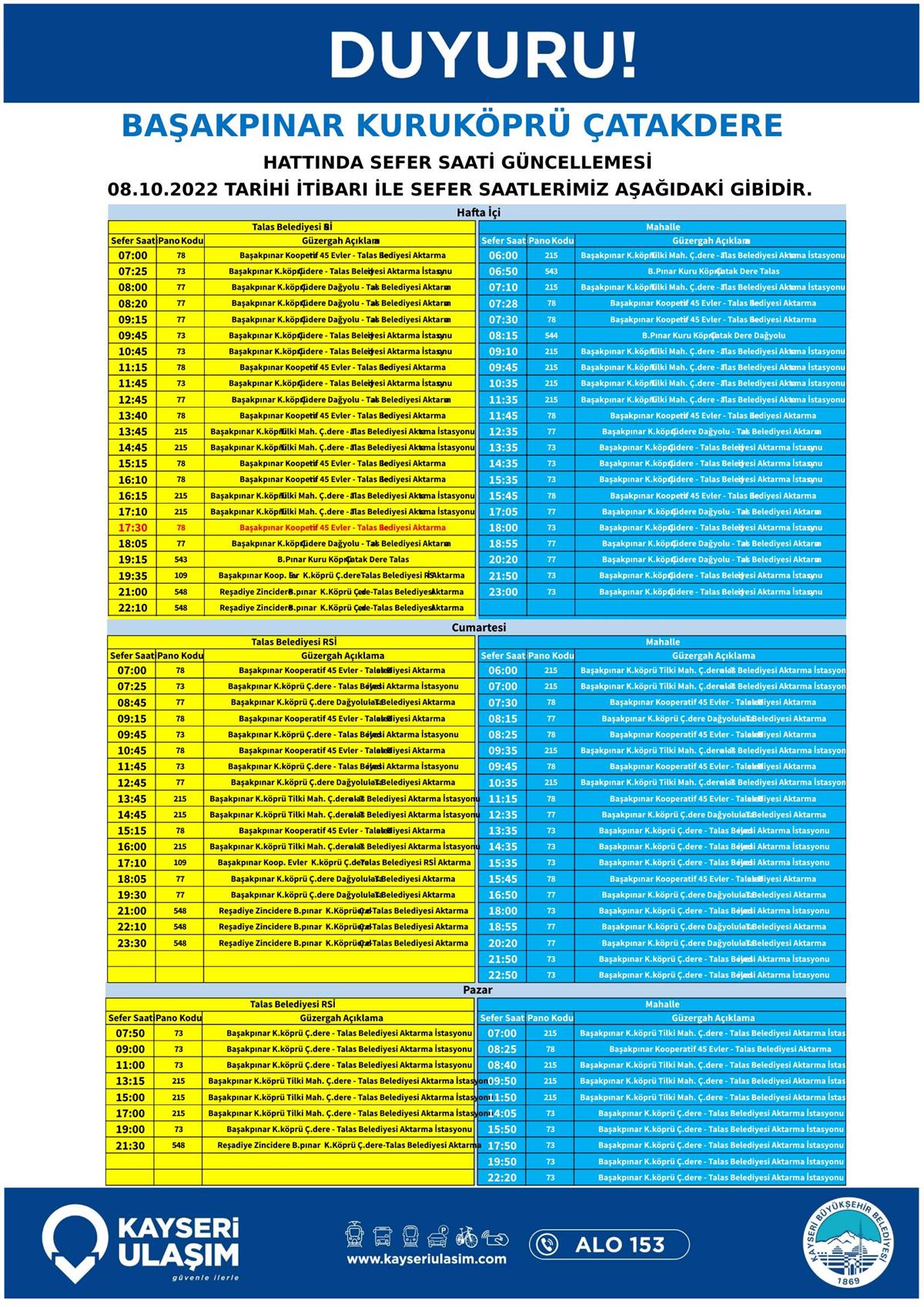 08.10.2022 Tarihinden İtibaren Değişik Yapılacak Otobüs Seferleri Duyurusu!