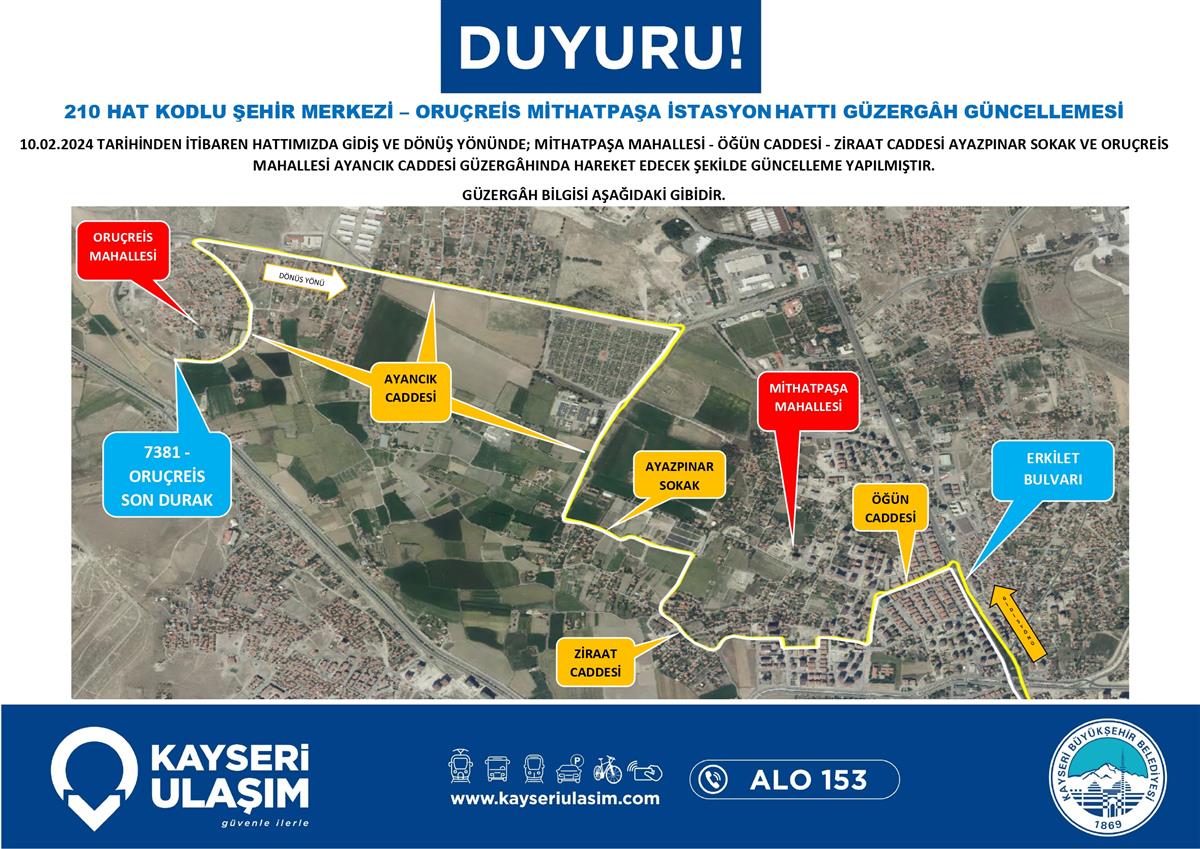 ŞEHİR MERKEZİ – ORUÇREİS MİTHATPAŞA İSTASYON HATTI GÜZERGÂH
