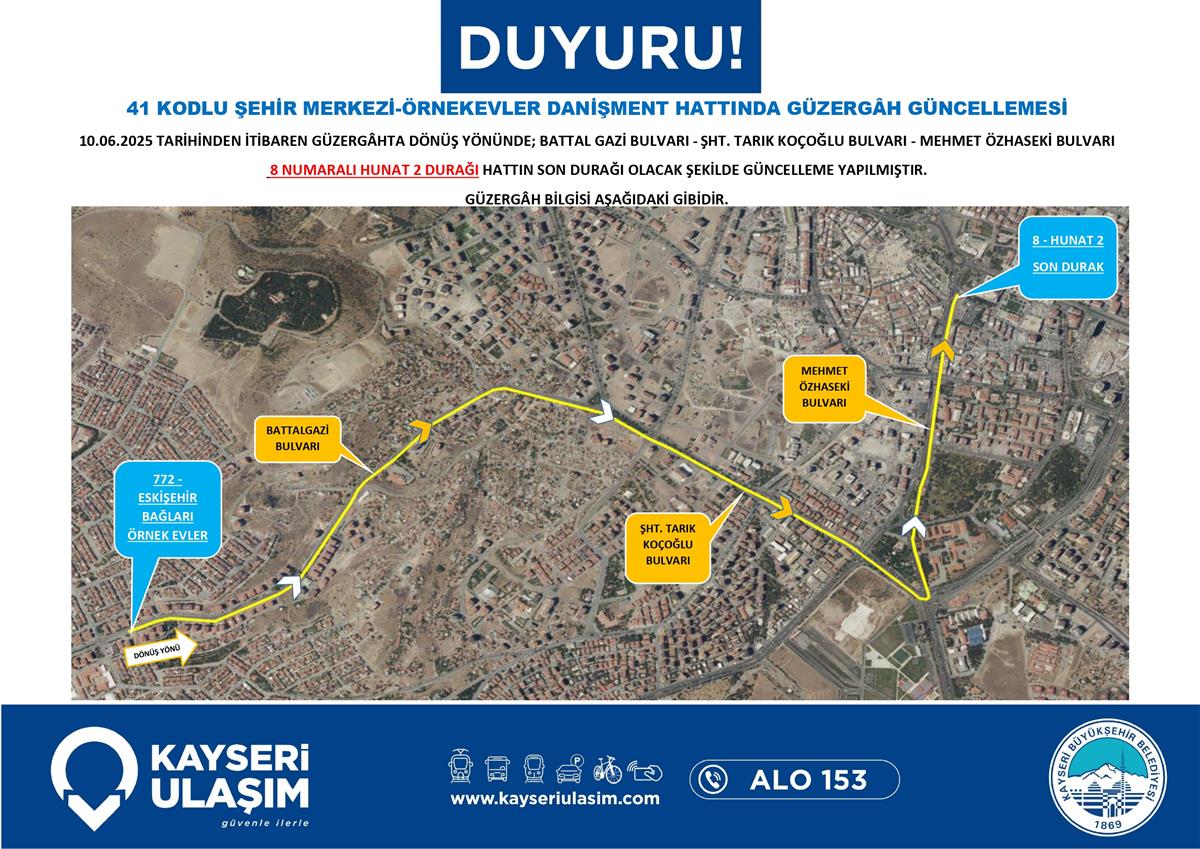 10 Haziran 2025 Tarihinden itibaren Bazı Sefer Saat ve Güzergâh Güncellemeleri Yapılmıştır.
