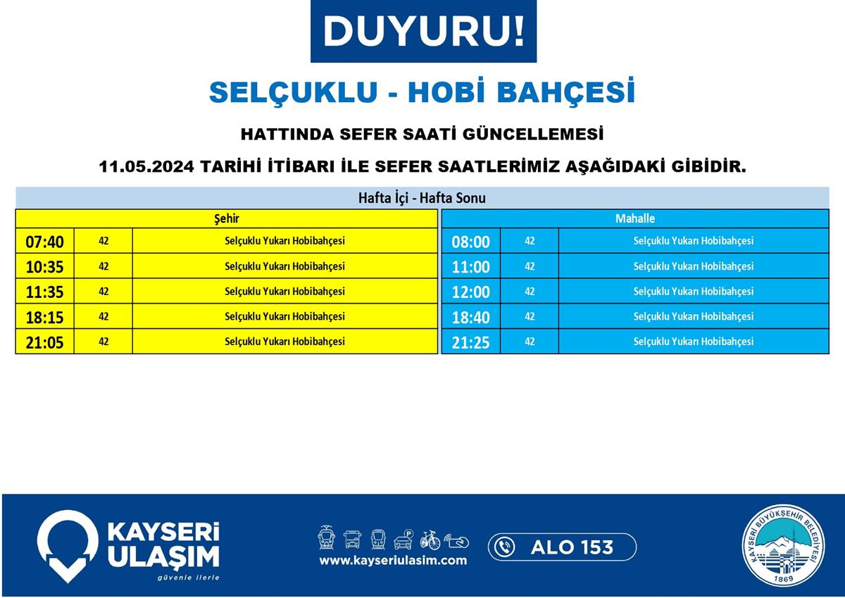 SELÇUKLU - HOBİ BAHÇESİ HATTINDA SEFER SAATİ GÜNCELLEMESİ
