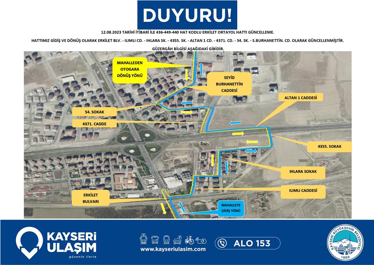 436-449-440 HAT KODLU ERKİLET ORTAYOL HATTI GÜNCELLEME