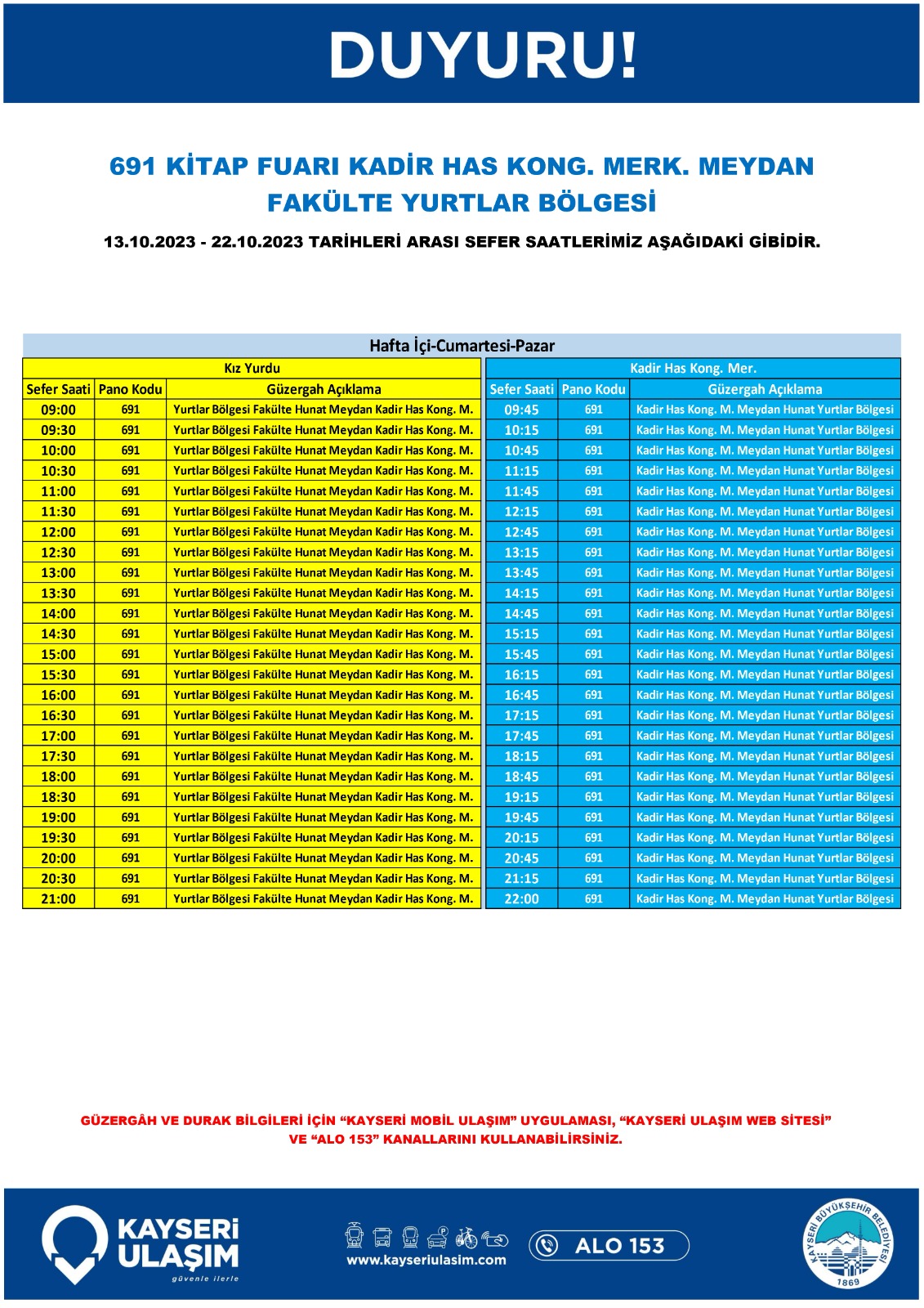 13 – 22 Ekim 2023 Kitap Fuarı Sefer Saatleri