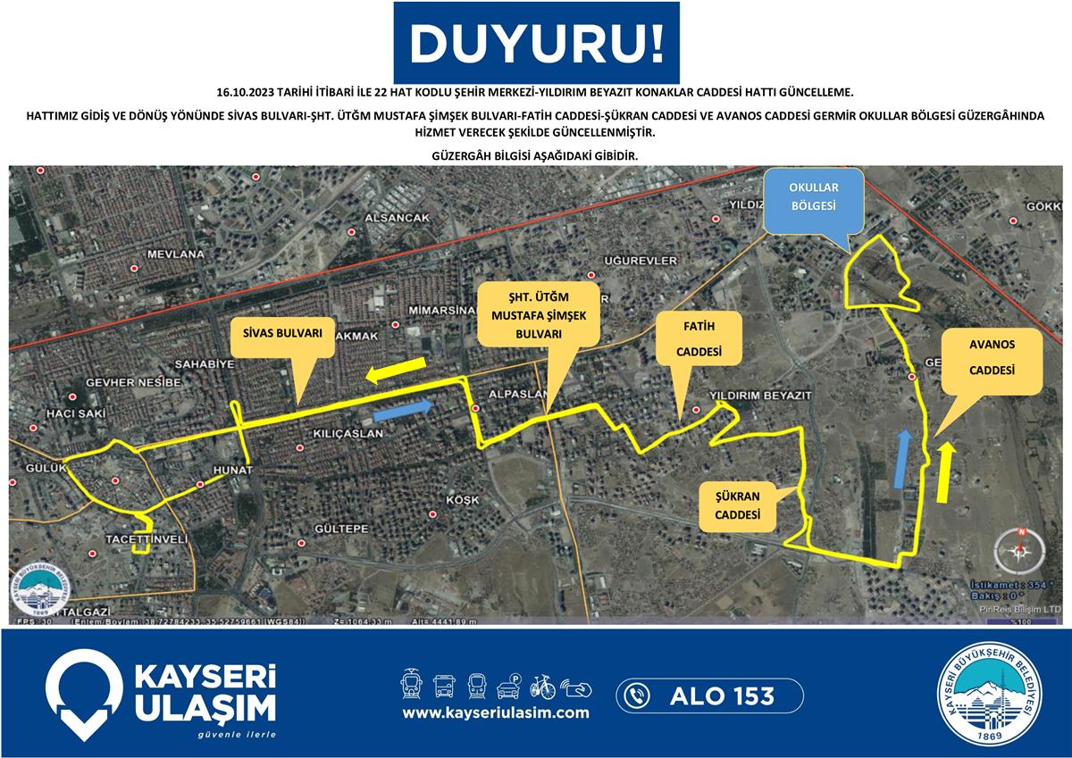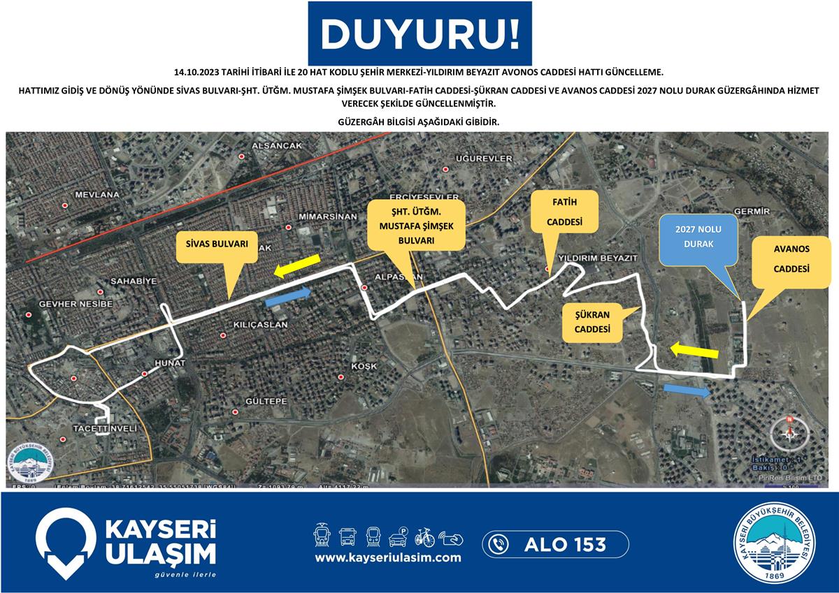 ŞEHİR MERKEZİ-YILDIRIM BEYAZIT AVONOS CADDESİ HATTI GÜNCELLEME