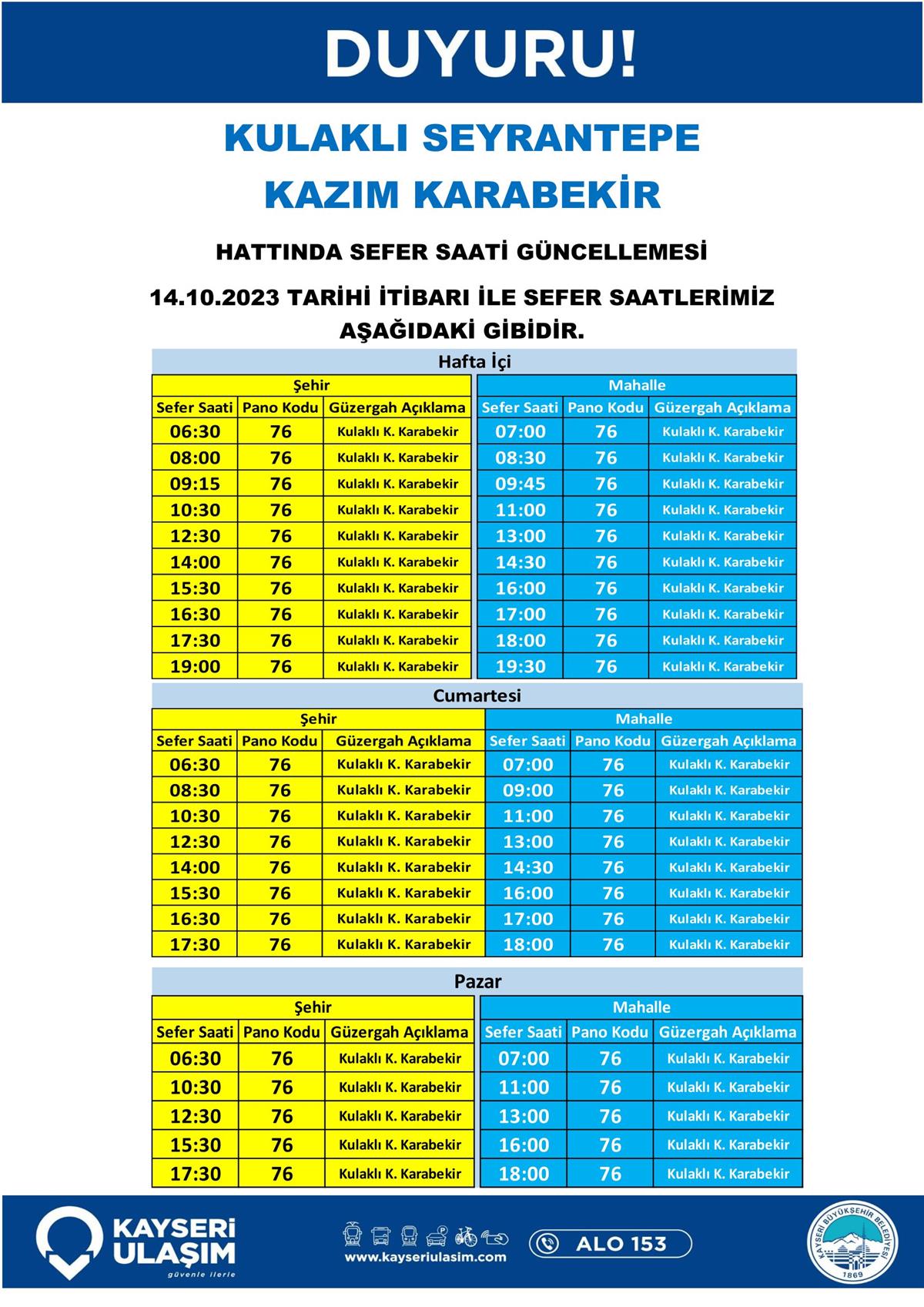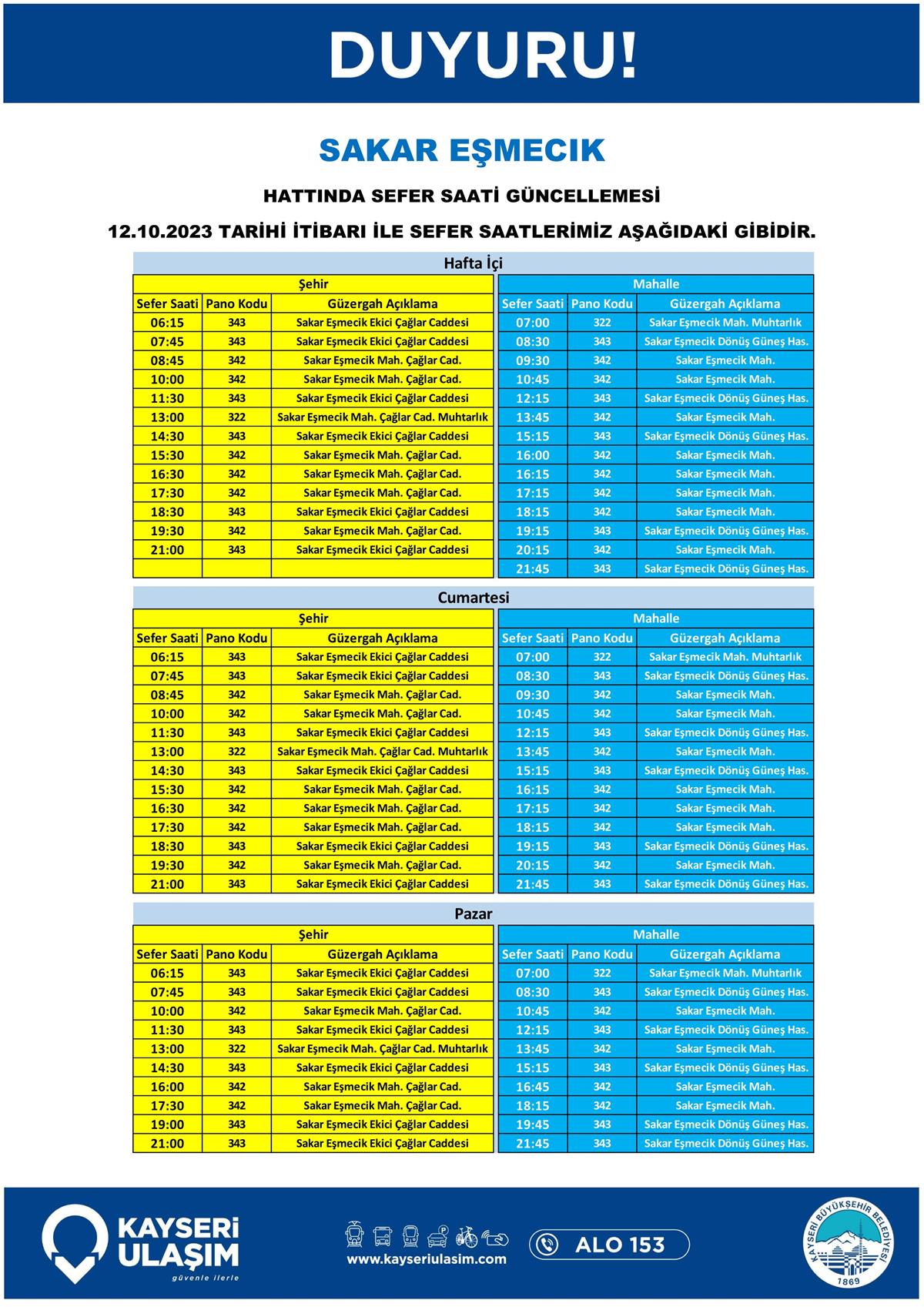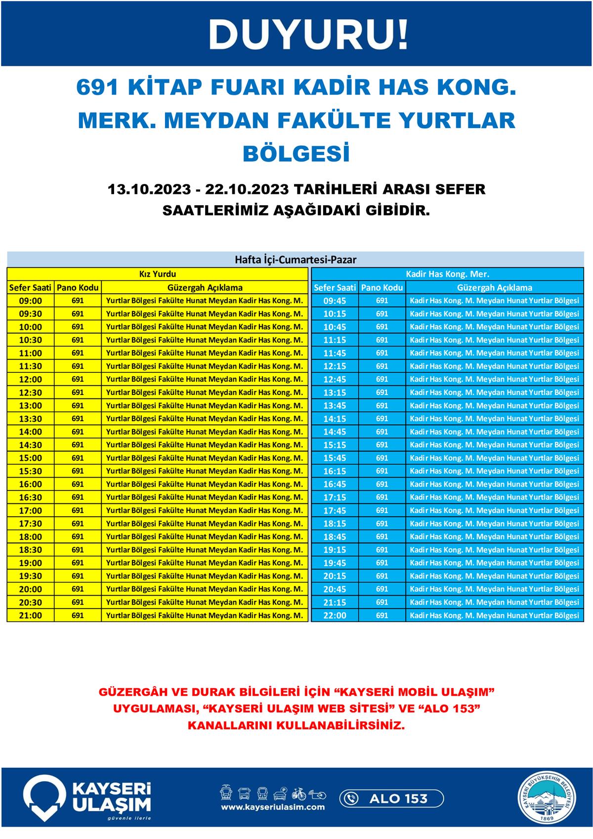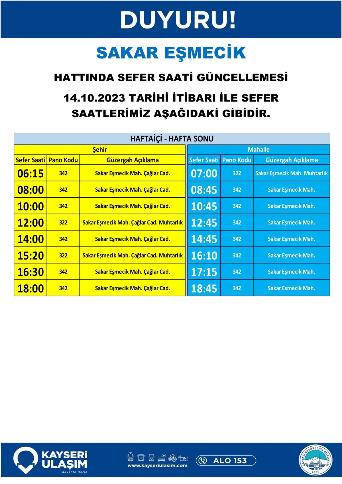 14 – 16 Ekim 2023 Tarihleri Arasında Bazı Sefer Saat ve Güzergah Güncellemeleri Yapılmıştır.