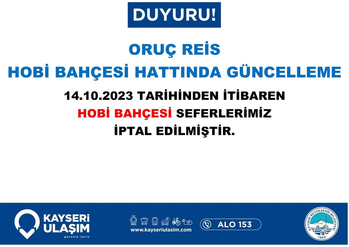 ORUÇ REİS HOBİ BAHÇESİ HATTINDA GÜNCELLEME