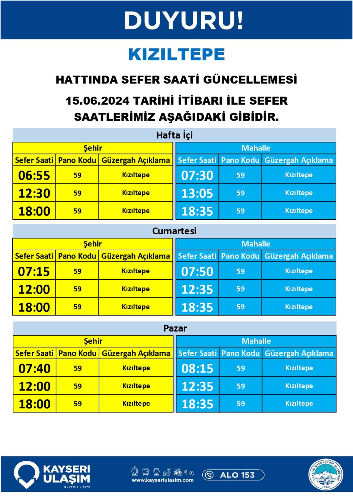 KIZILTEPE HATTINDA SEFER SAATİ GÜNCELLEMESİ