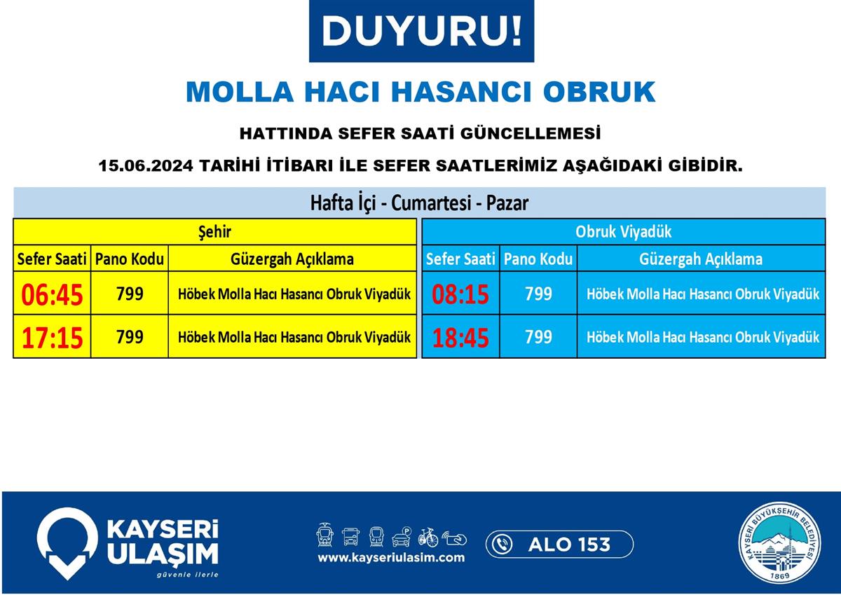 MOLLA HACI HASANCI OBRUK HATTINDA SEFER SAATİ GÜNCELLEMESİ