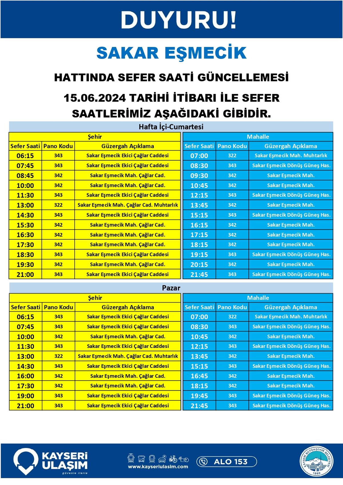 SAKAR EŞMECİK HATTINDA SEFER SAATİ GÜNCELLEMESİ