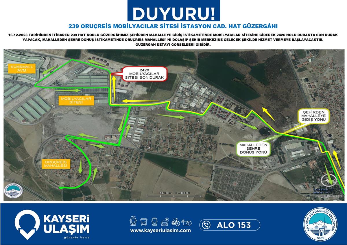 239 ORUÇREİS MOBİLYACILAR SİTESİ İSTASYON CAD. HAT GÜZERGÂHI