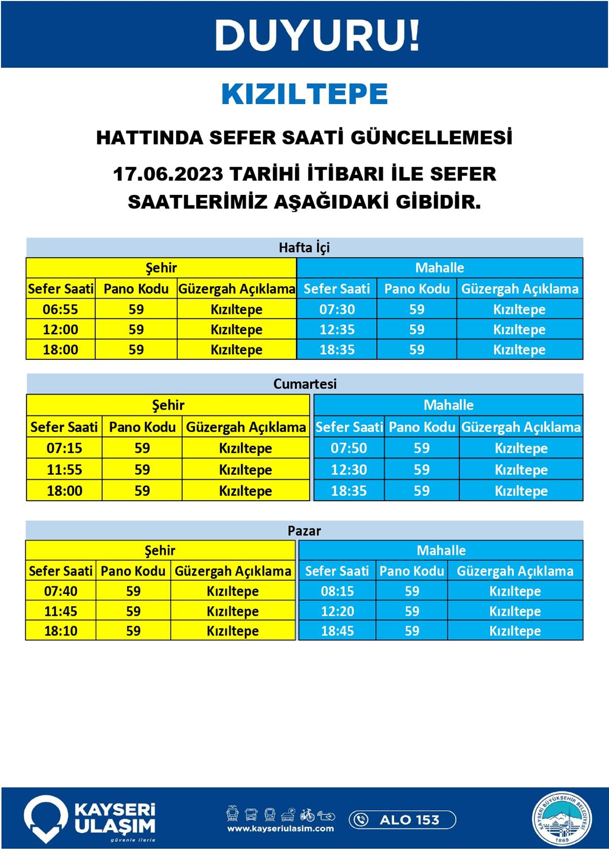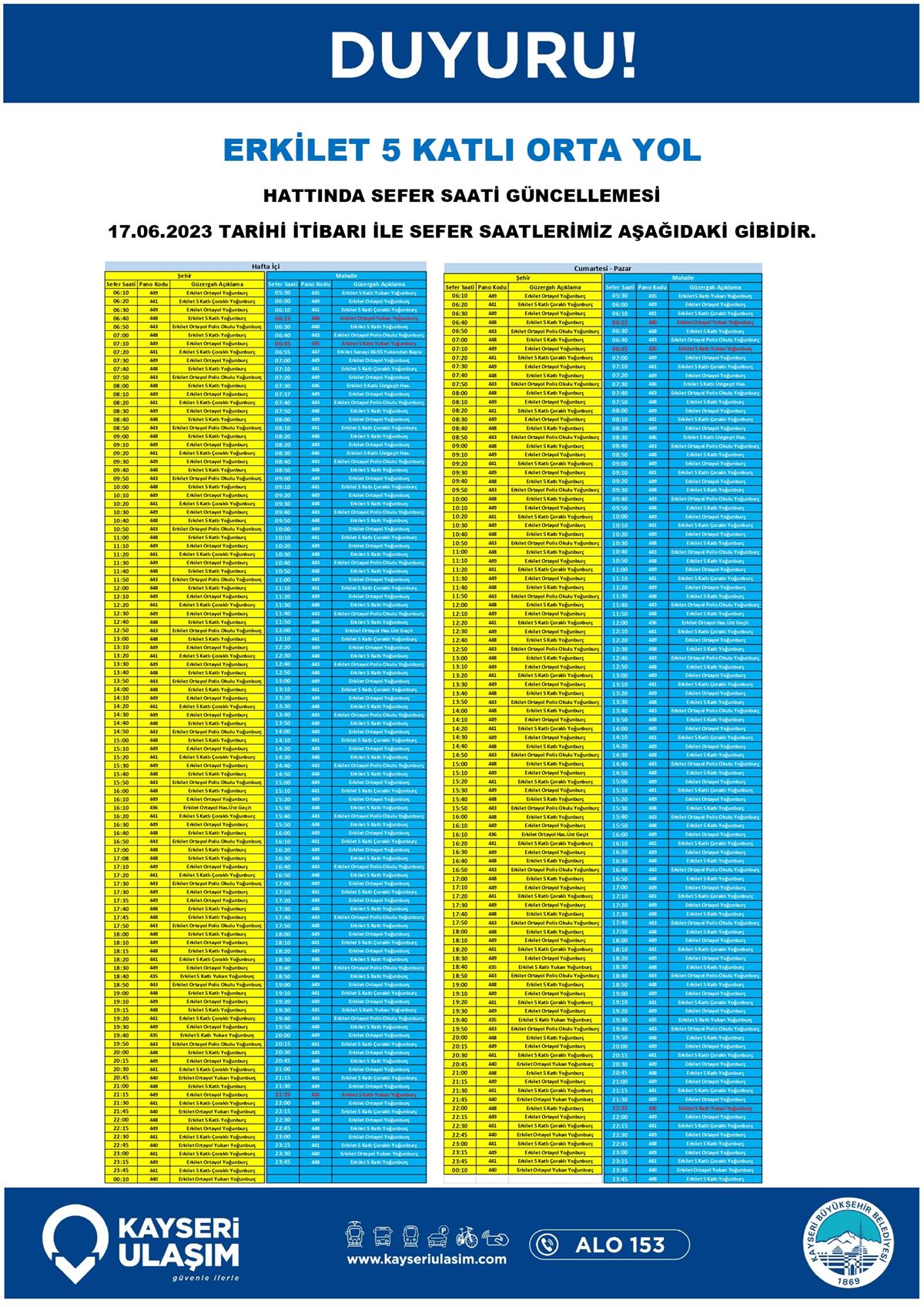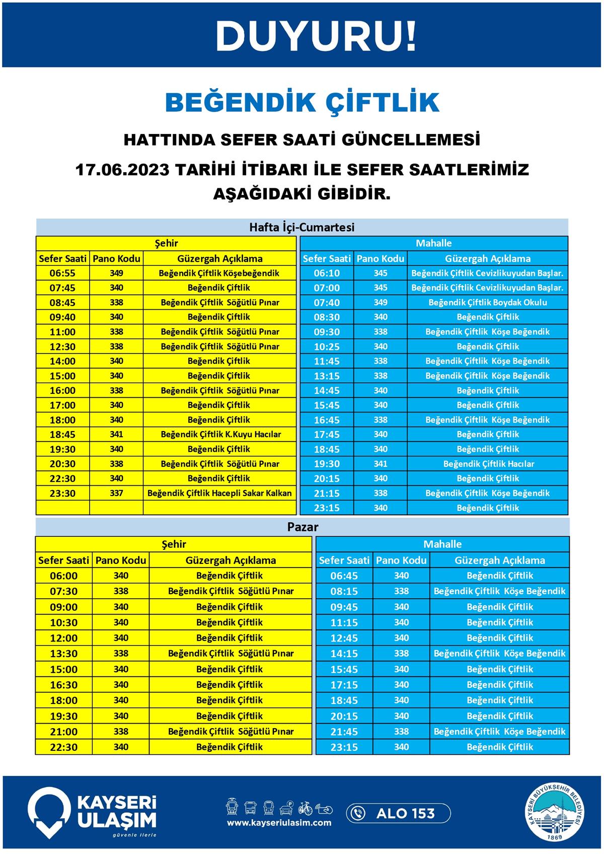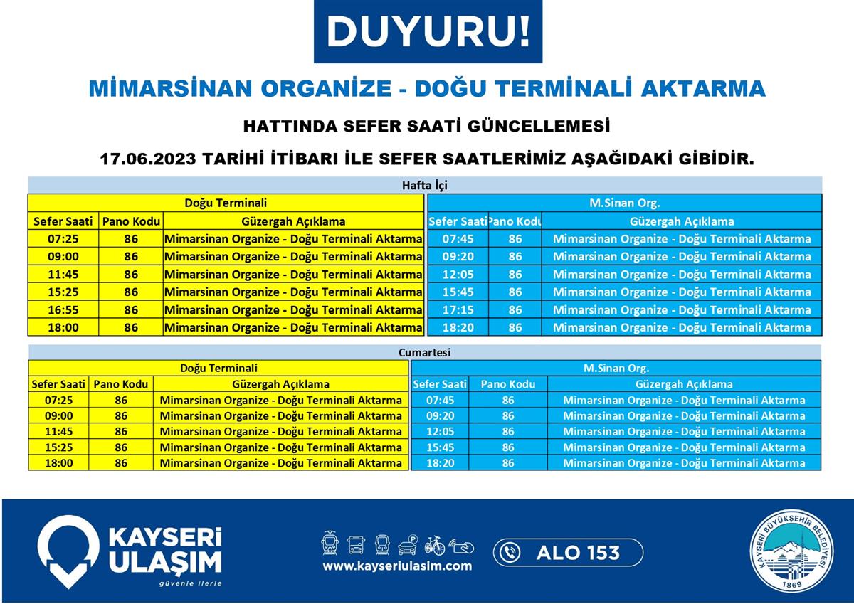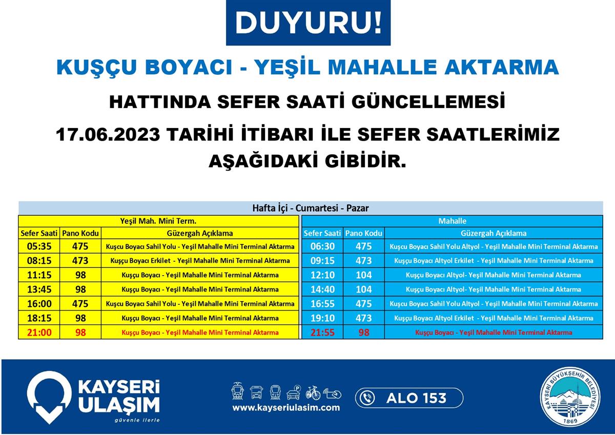 17 – 20 Haziran 2023 Tarihinden İtibaren Bazı Sefer Saat ve Güzergah Güncellemeleri Yapılmıştır.