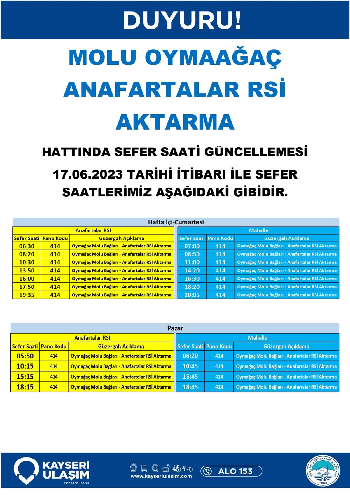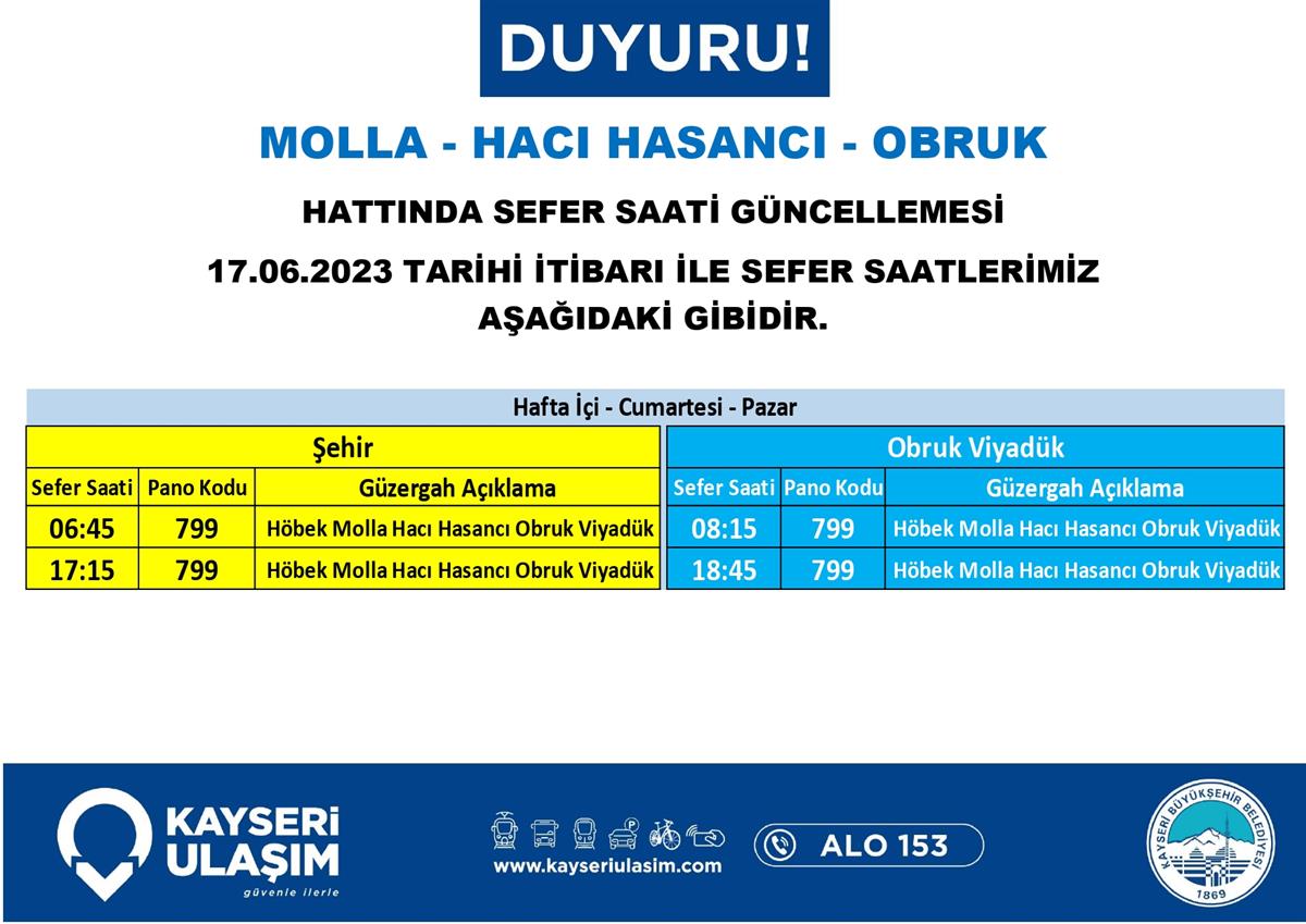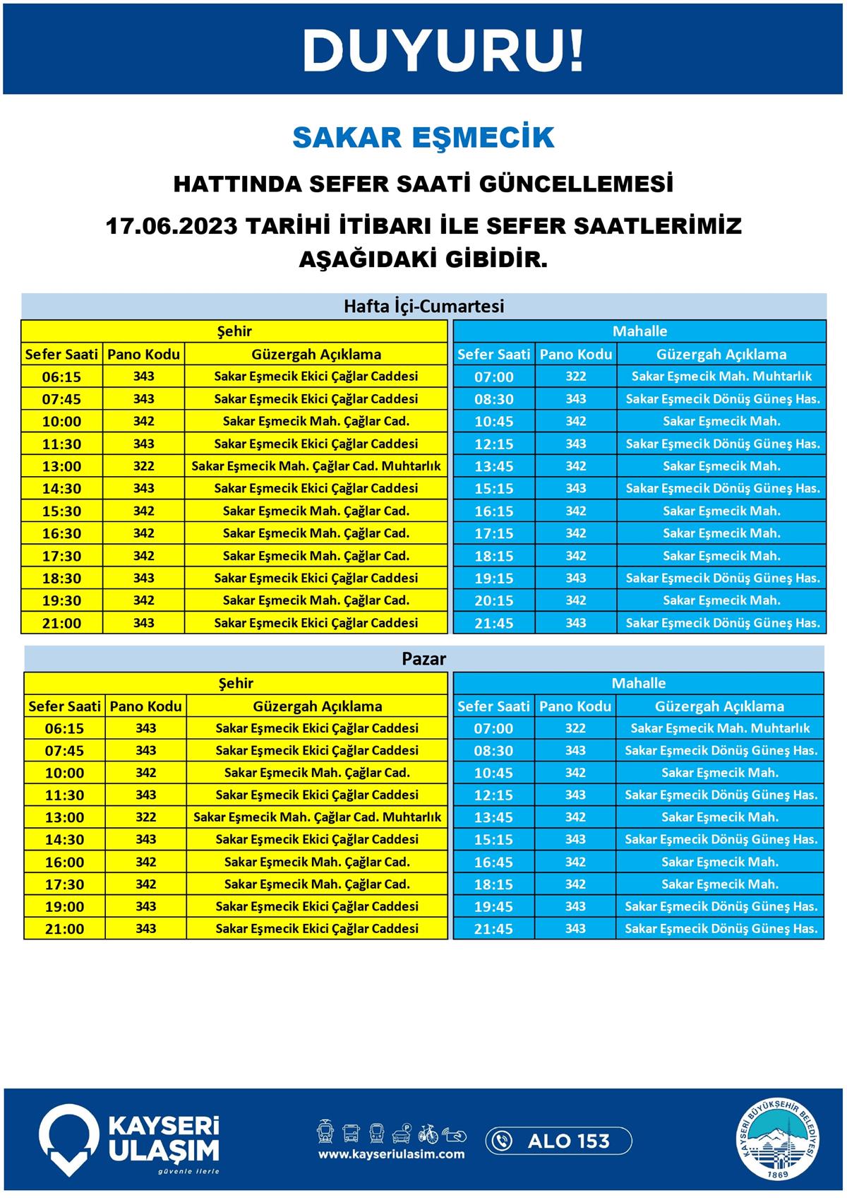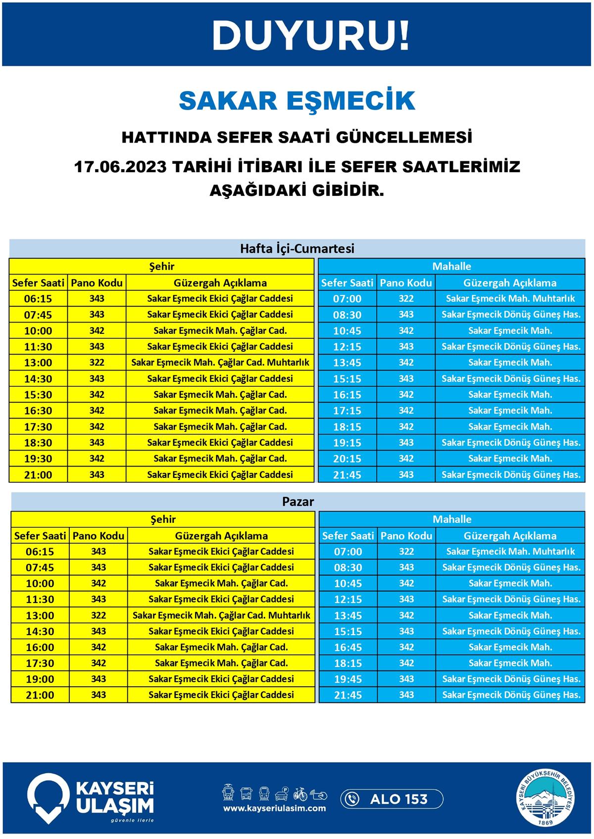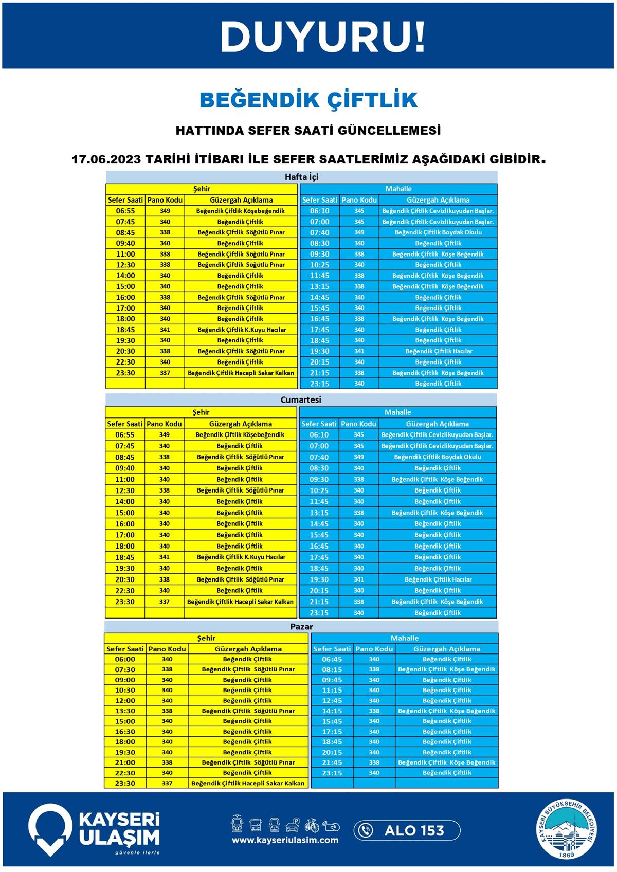 17 – 20 Haziran 2023 Tarihinden İtibaren Bazı Sefer Saat ve Güzergah Güncellemeleri Yapılmıştır.