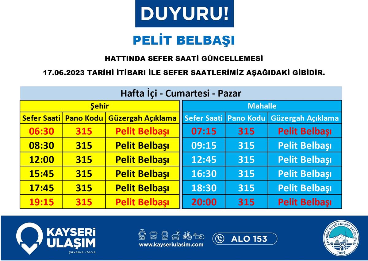 Kayseri Ulaşım A.Ş / Duyurular