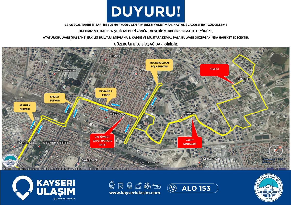 ŞEHİR MERKEZİ-YAKUT MAH. HASTANE CADDESİ HAT GÜNCELLEME