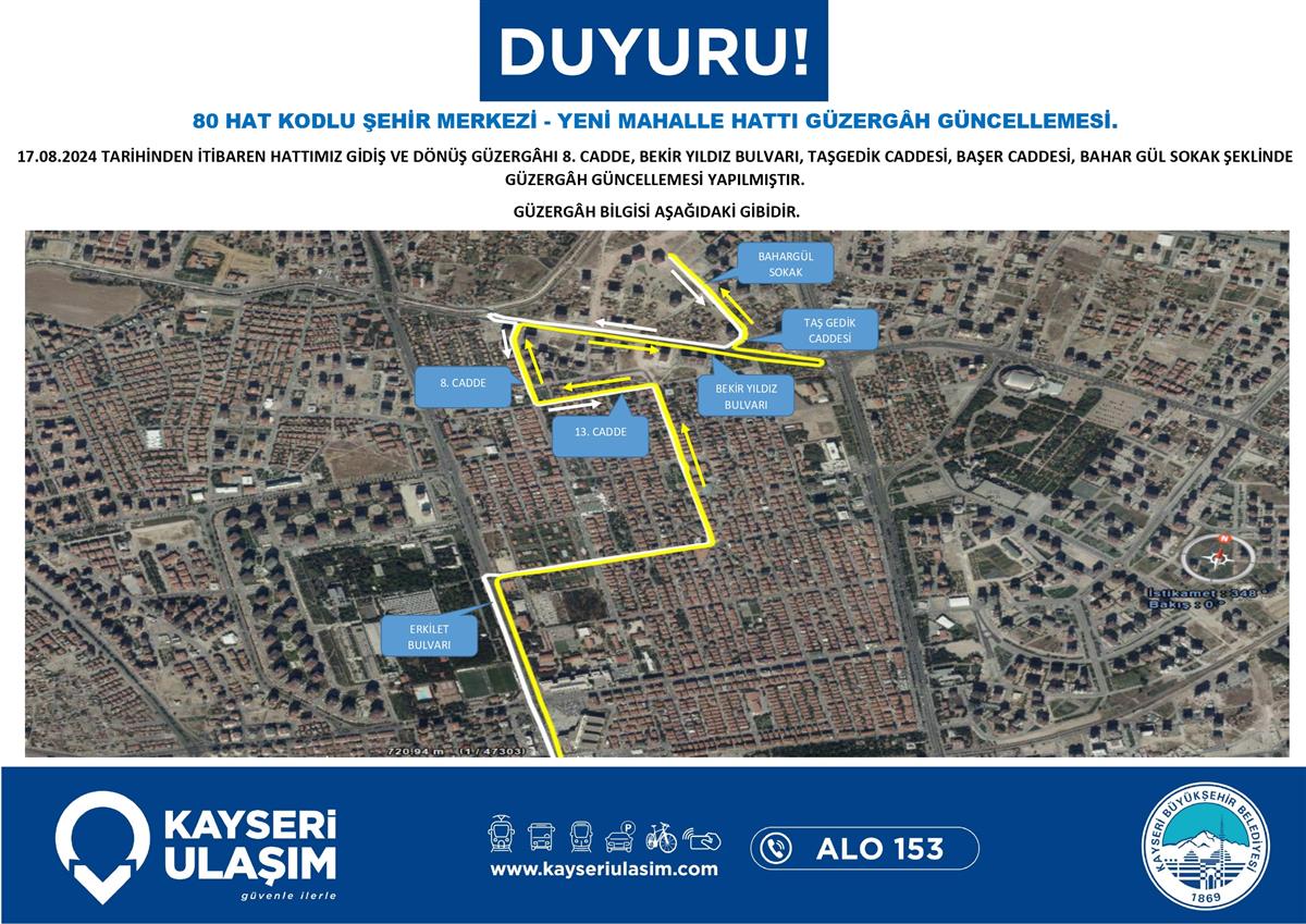 80 HAT KODLU ŞEHİR MERKEZİ - YENİ MAHALLE HATTI GÜZERGÂH GÜNCELLEMESİ.