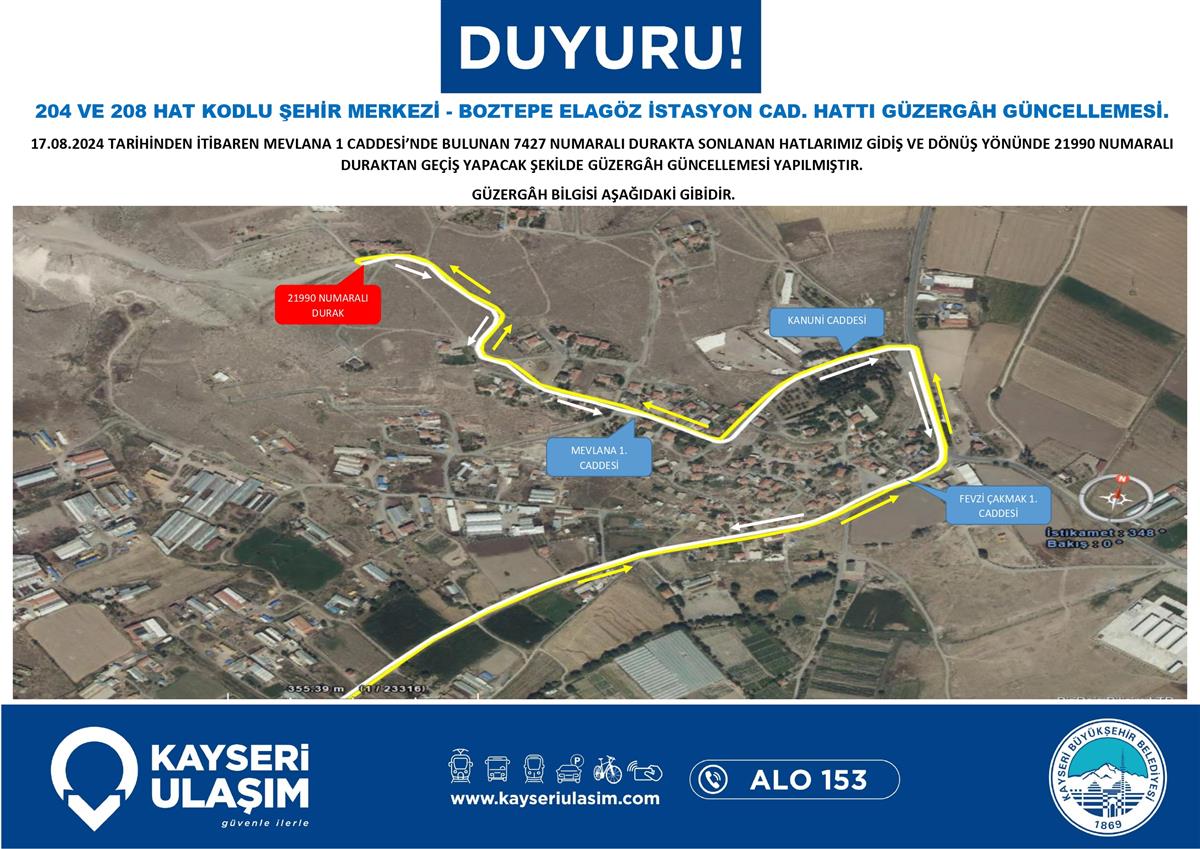 204 VE 208 HAT KODLU ŞEHİR MERKEZİ - BOZTEPE ELAGÖZ İSTASYON CAD. HATTI GÜZERGÂH GÜNCELLEMESİ.