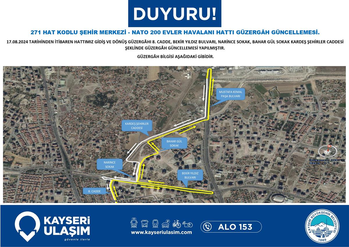 271 HAT KODLU ŞEHİR MERKEZİ - NATO 200 EVLER HAVALANI HATTI GÜZERGÂH GÜNCELLEMESİ.
