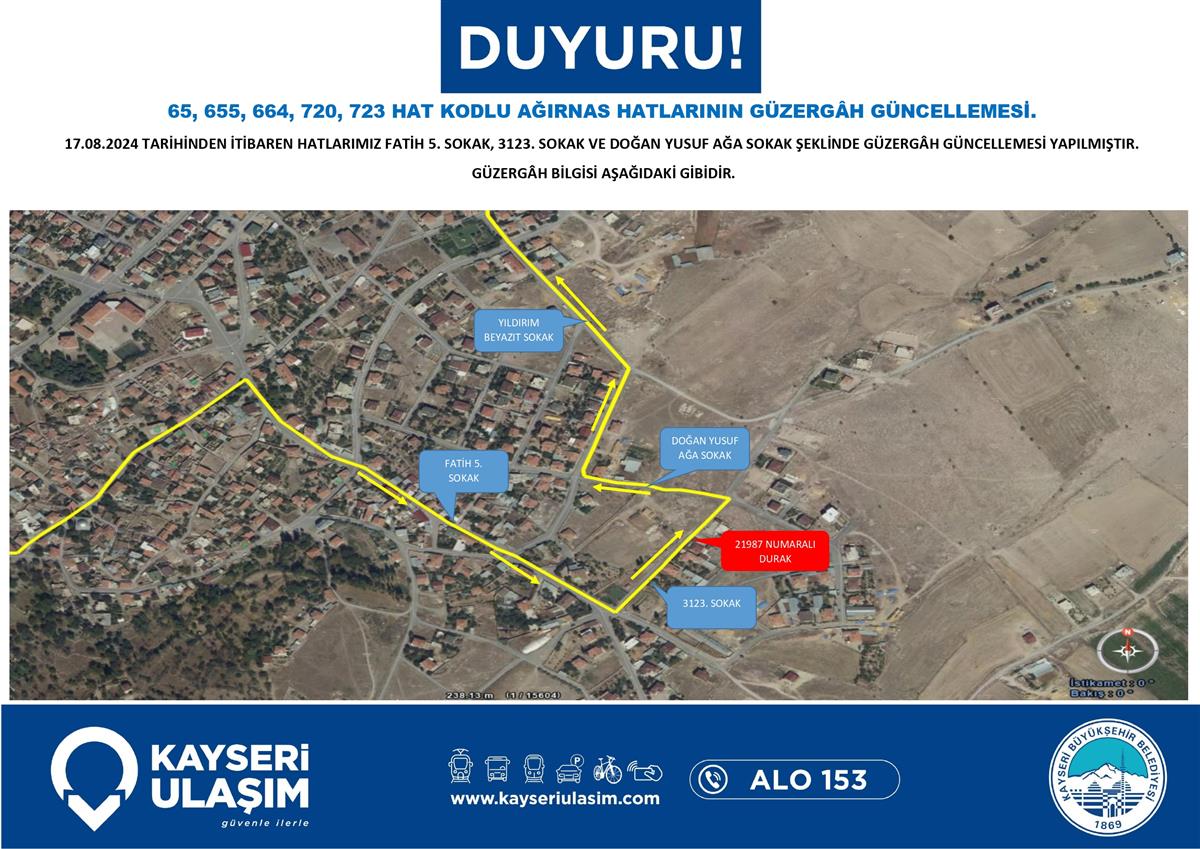 65, 655, 664, 720, 723 HAT KODLU AĞIRNAS HATLARININ GÜZERGÂH GÜNCELLEMESİ.