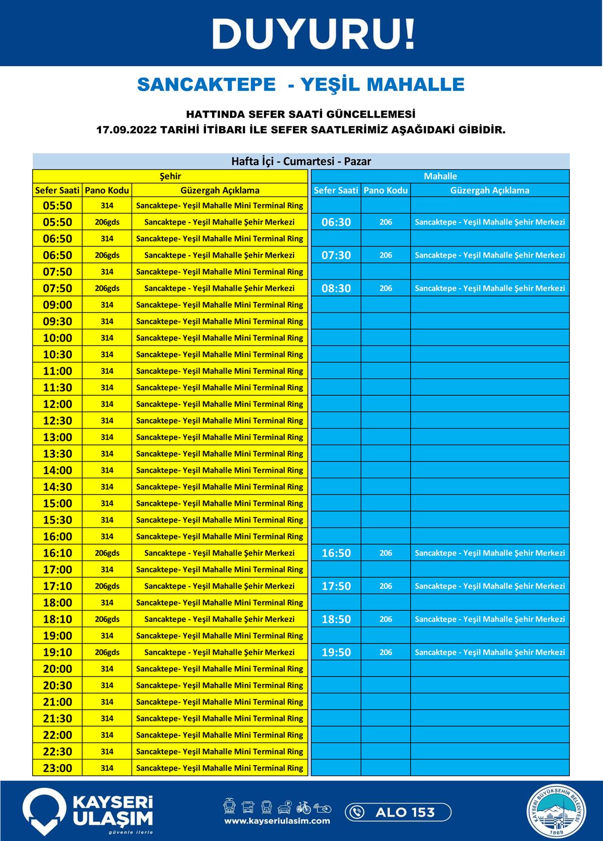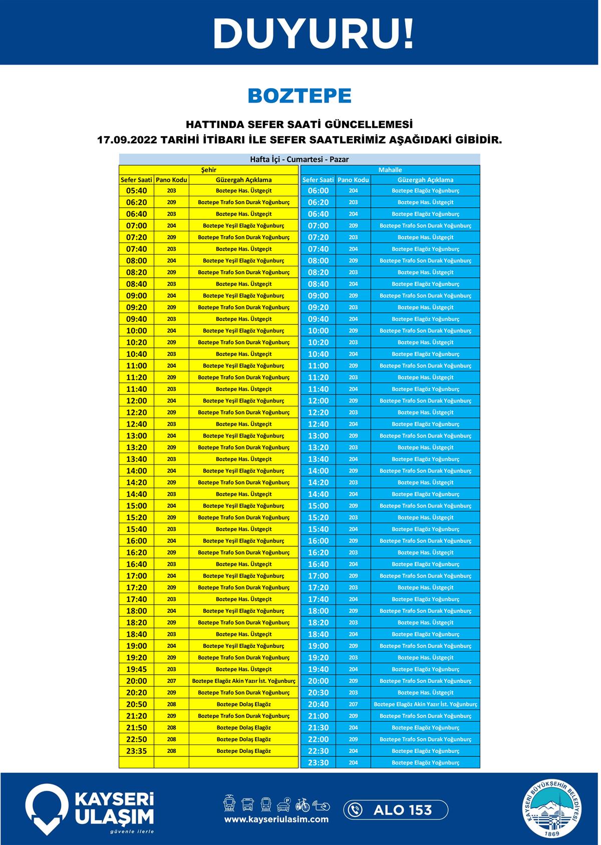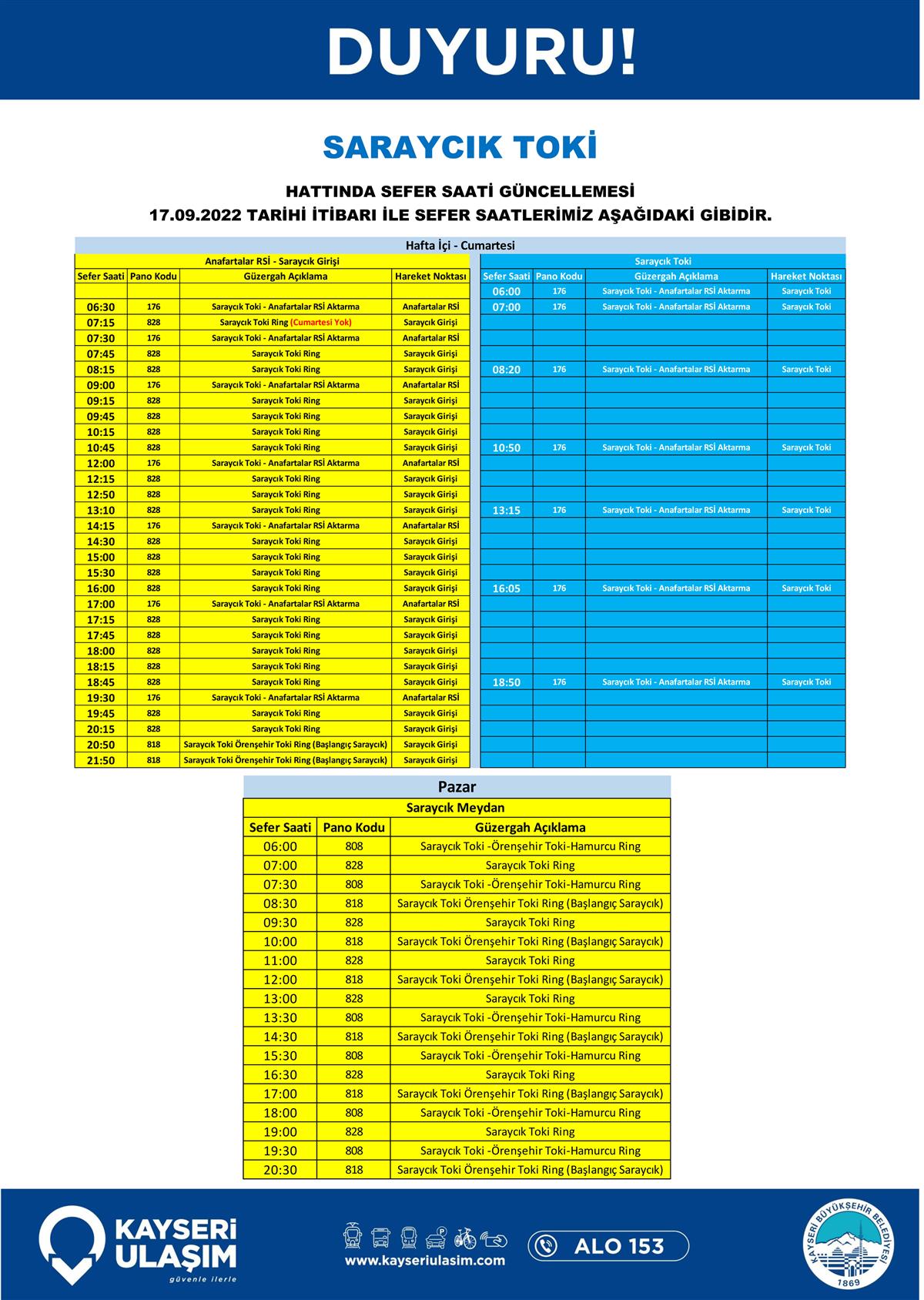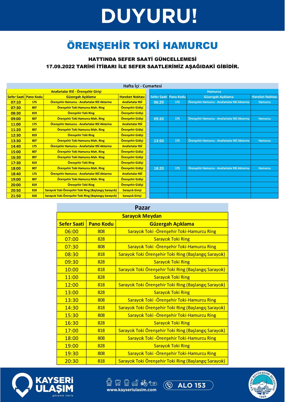 17.09.2022 Tarihinden İtibaren Değişik Yapılacak Otobüs Seferleri Duyurusu!