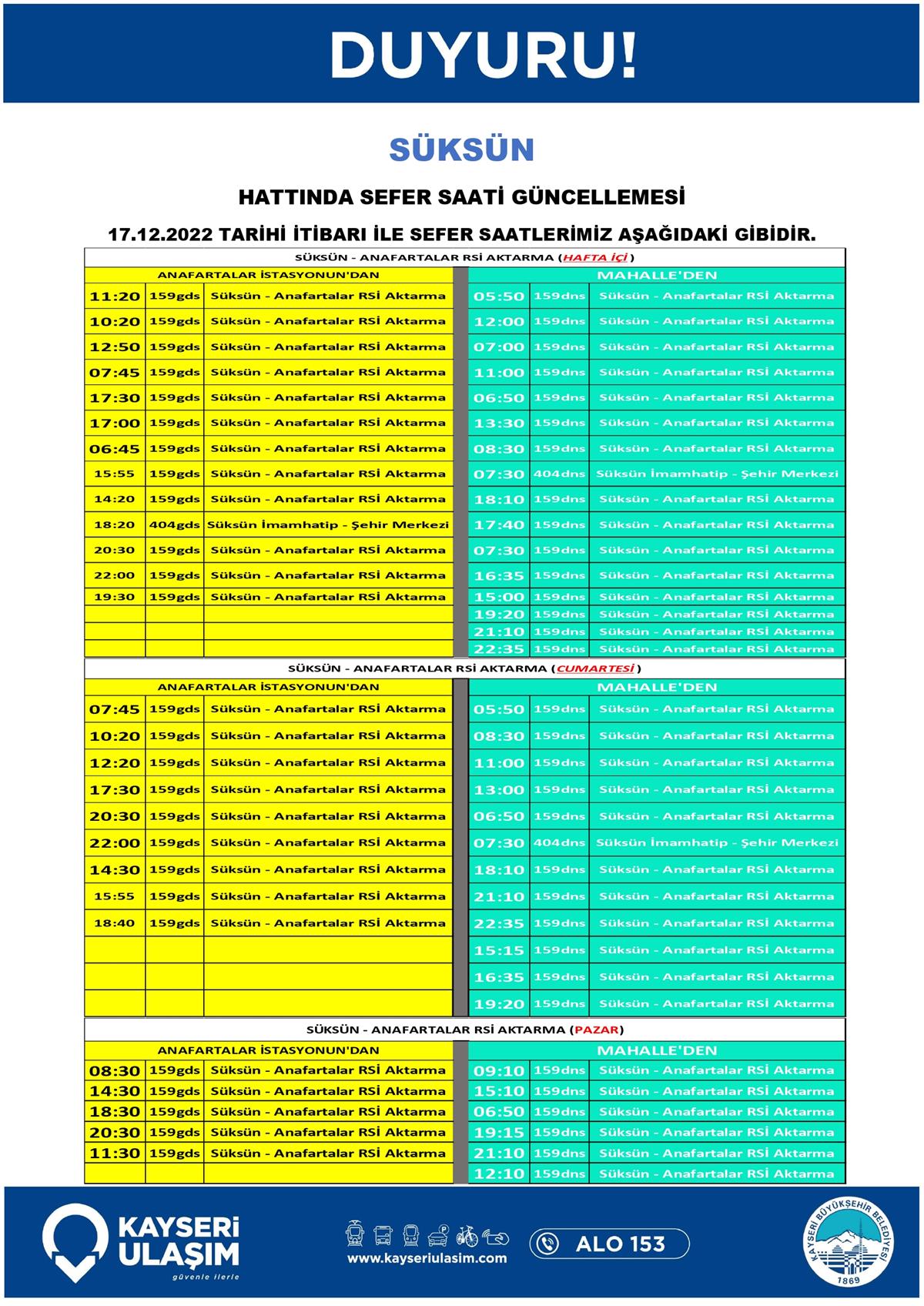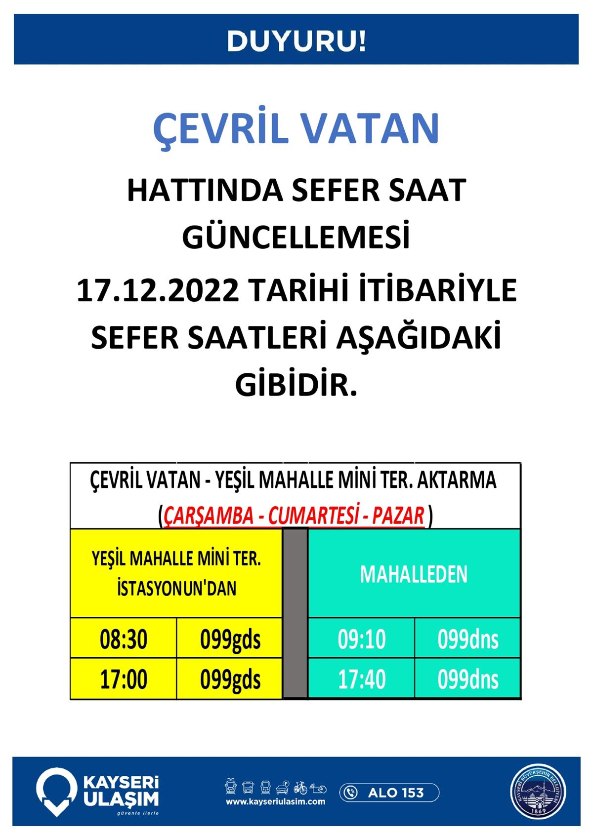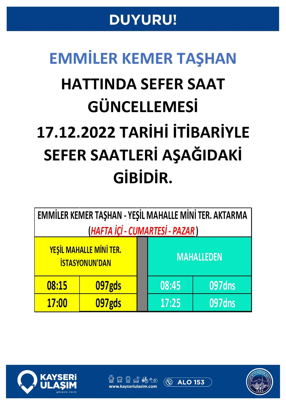 SÜKSÜN - EMMİLER KEMER TAŞHAN - ÇEVRİL VATAN HATTINDA SEFER SAATİ GÜNCELLEMESİ 17.12.2022 TARİHİ İTİBARI İLE SEFER SAATLERİMİZ GÖRSELDE SUNULMUŞTUR.
