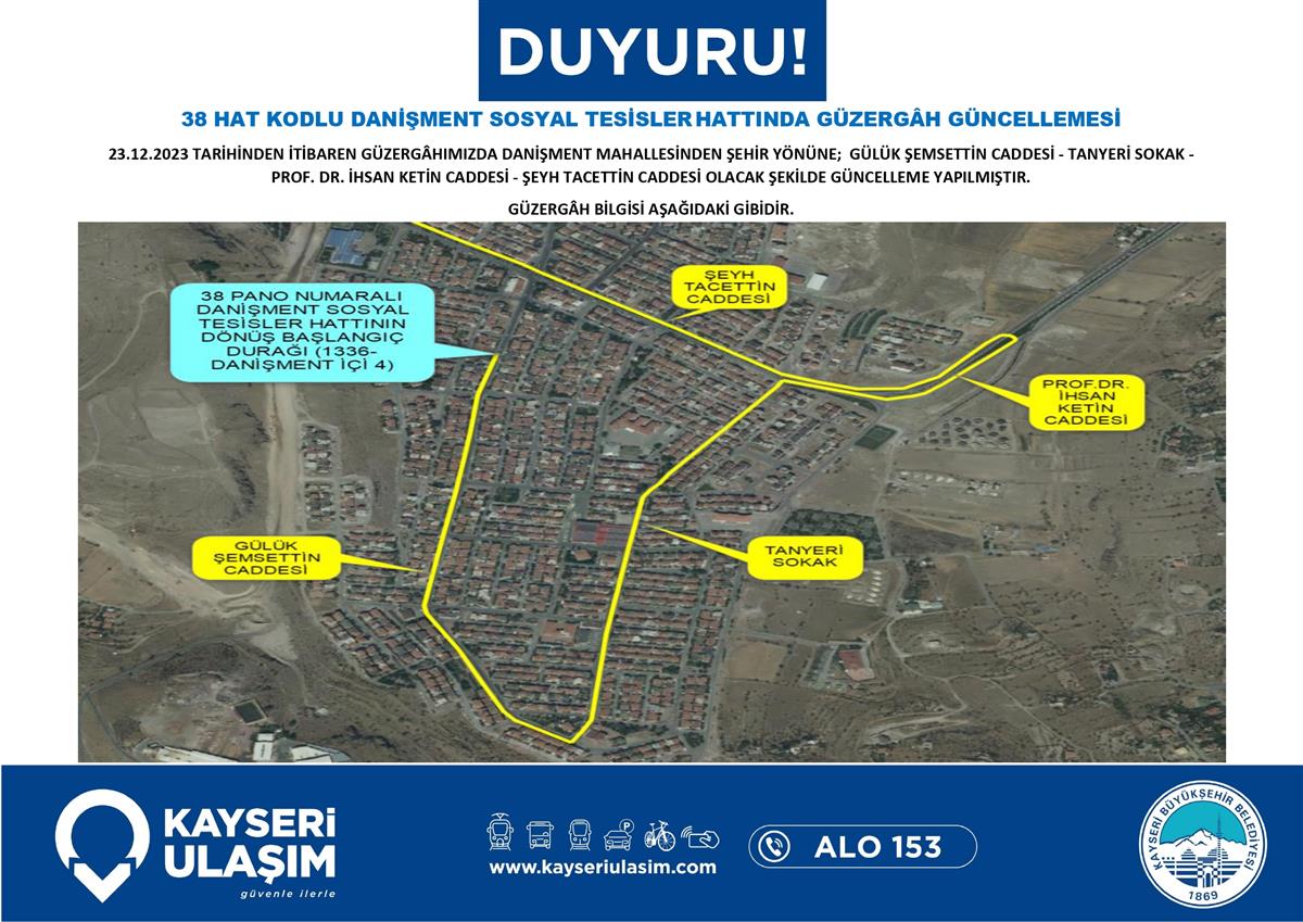 38 HAT KODLU DANİŞMENT SOSYAL TESİSLER HATTINDA GÜZERGÂH GÜNCELLEMESİ
