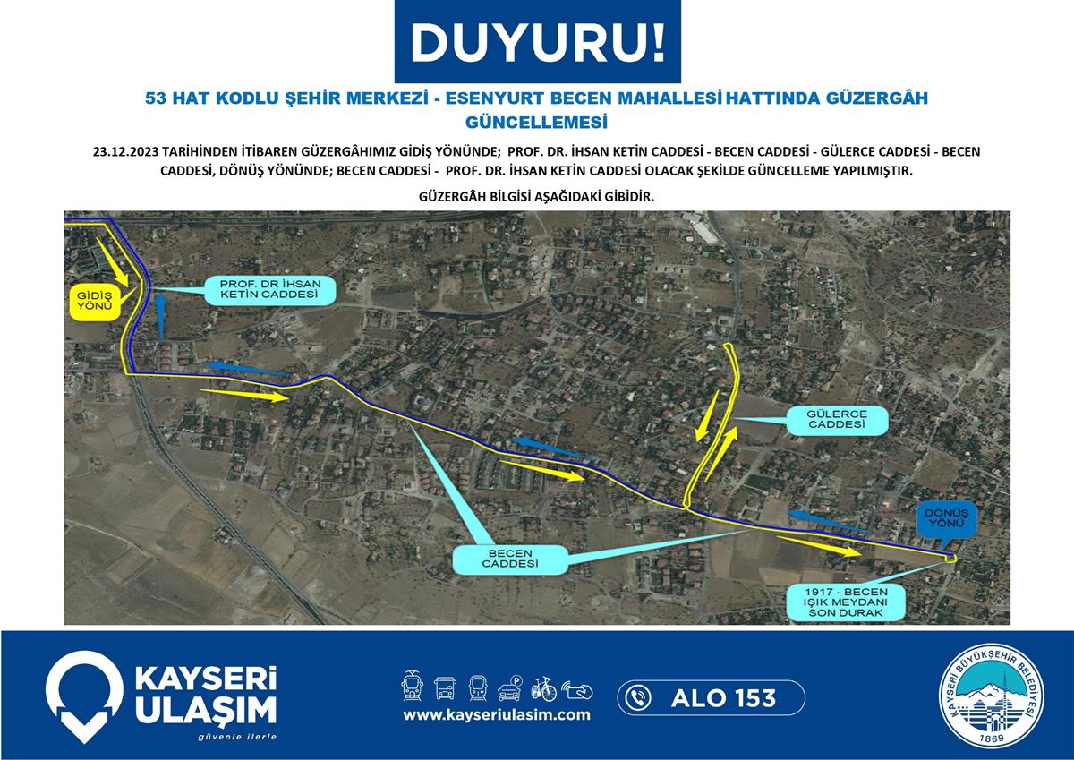 53 HAT KODLU ŞEHİR MERKEZİ - ESENYURT BECEN MAHALLESİ HATTINDA GÜZERGÂH GÜNCELLEMES