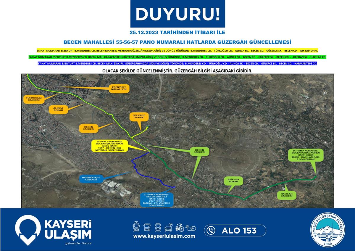 BECEN MAHALLESİ 55-56-57 PANO NUMARALI HATLARDA GÜZERGÂH GÜNCELLEMESİ