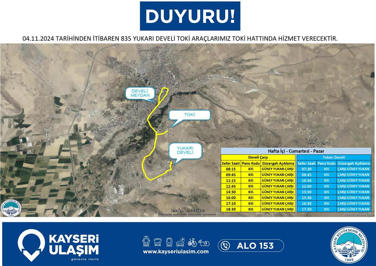 835 YUKARI DEVELİ TOKİ ARAÇLARIMIZ TOKİ HATTINDA HİZMET VERECEKTİR.