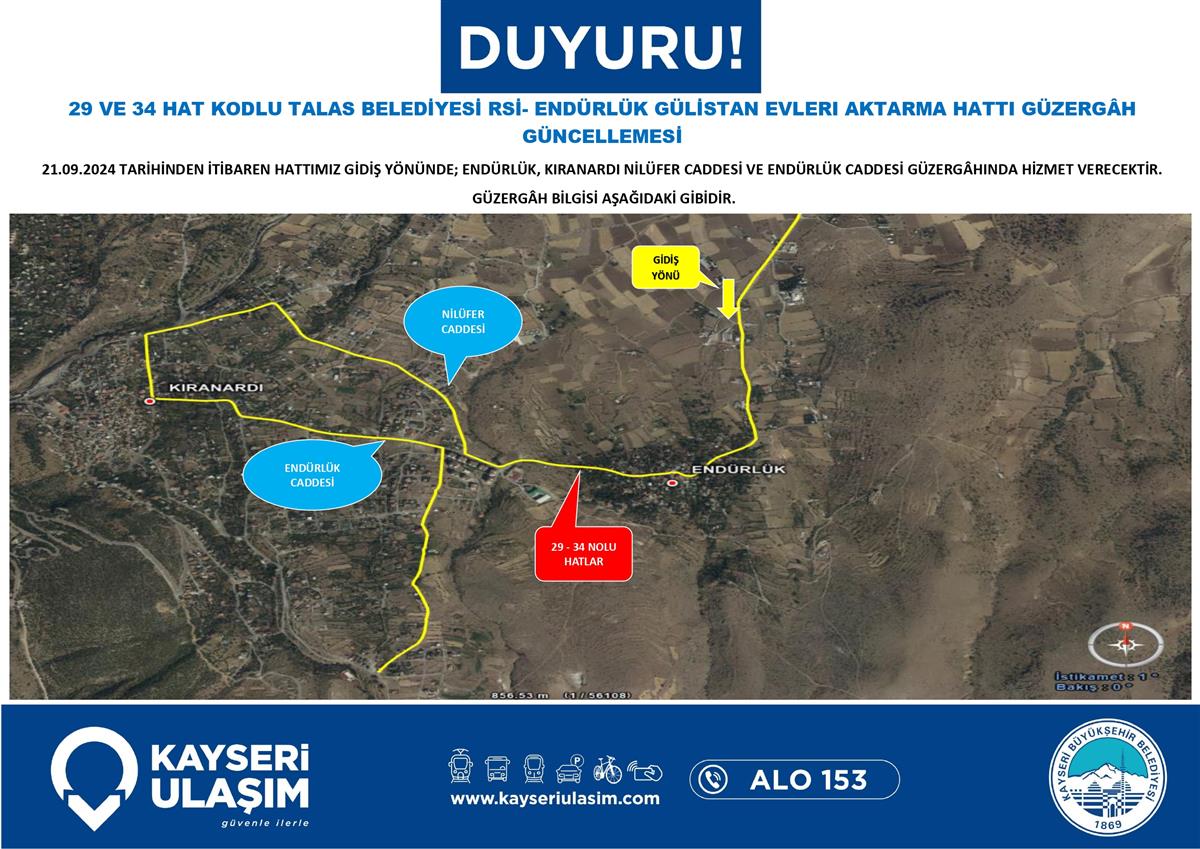 TALAS BELEDİYESİ RSİ- ENDÜRLÜK GÜLİSTAN EVLERI AKTARMA HATTI GÜZERGÂH GÜNCELLEMESİ